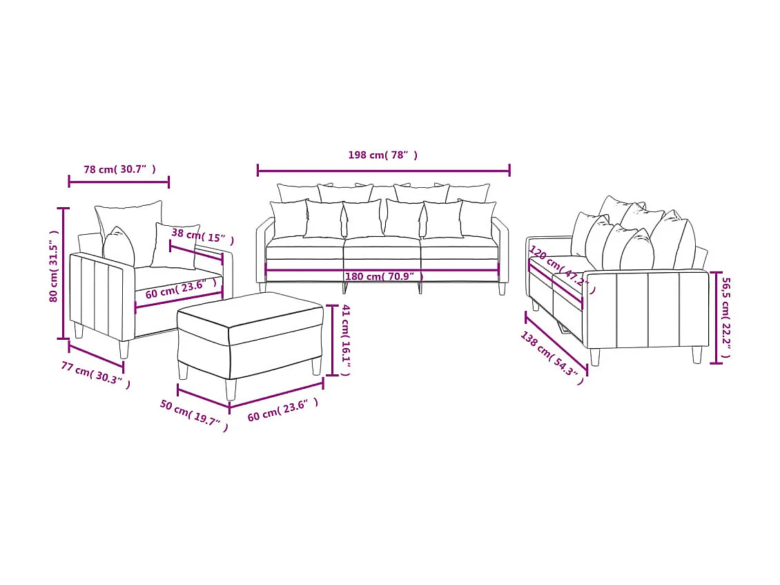 Ensemble de canapés 2 pièces avec coussins crème velours