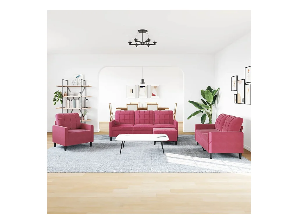 Ensemble de canapés 4 pièces rouge bordeaux velours