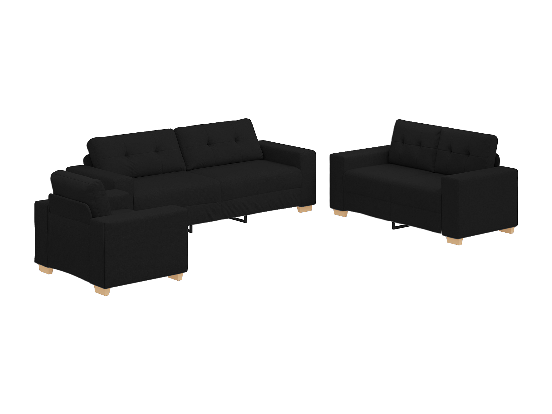 Ensemble de Canapés avec coussin avec oreiller 3 pcs Noir tissu