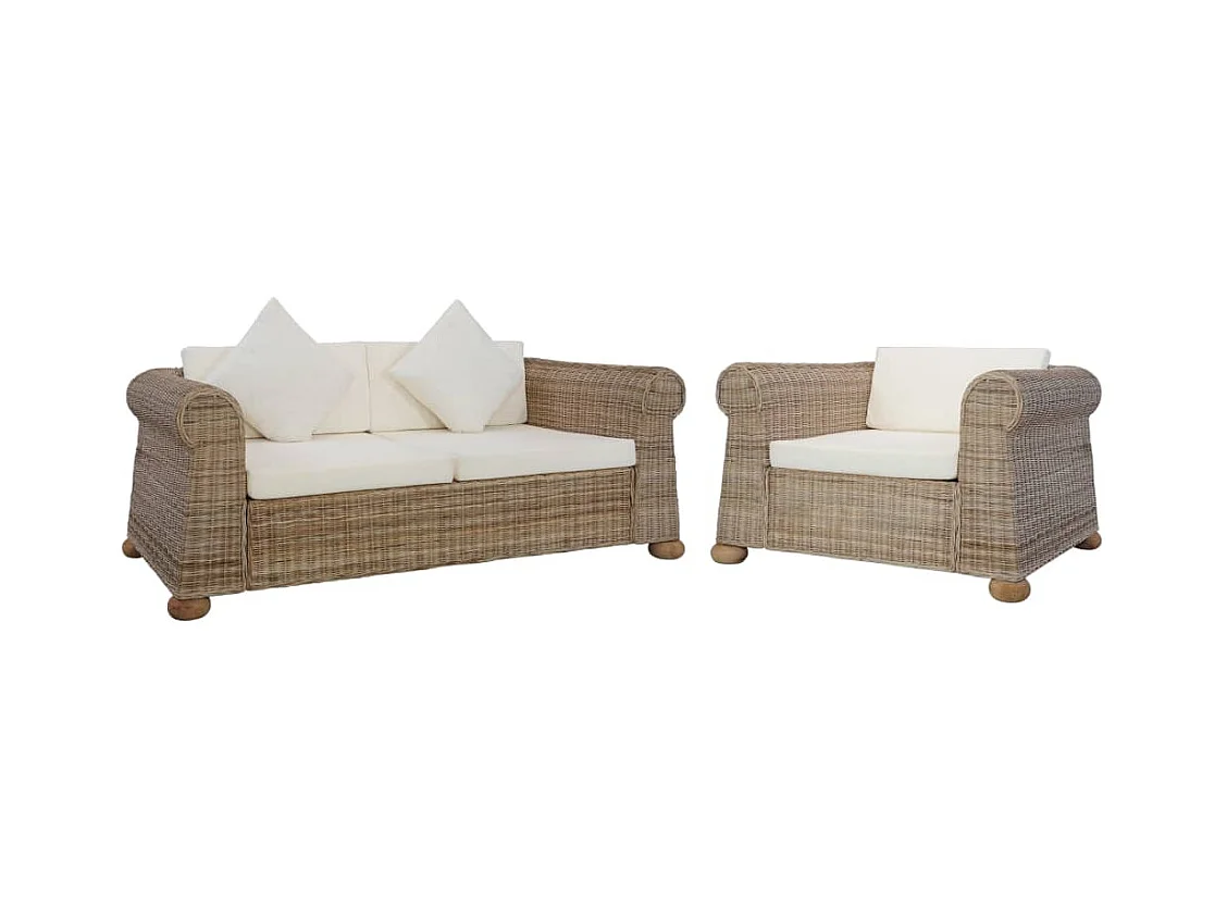 Ensemble de canapés avec coussins 2 pièces rotin naturel