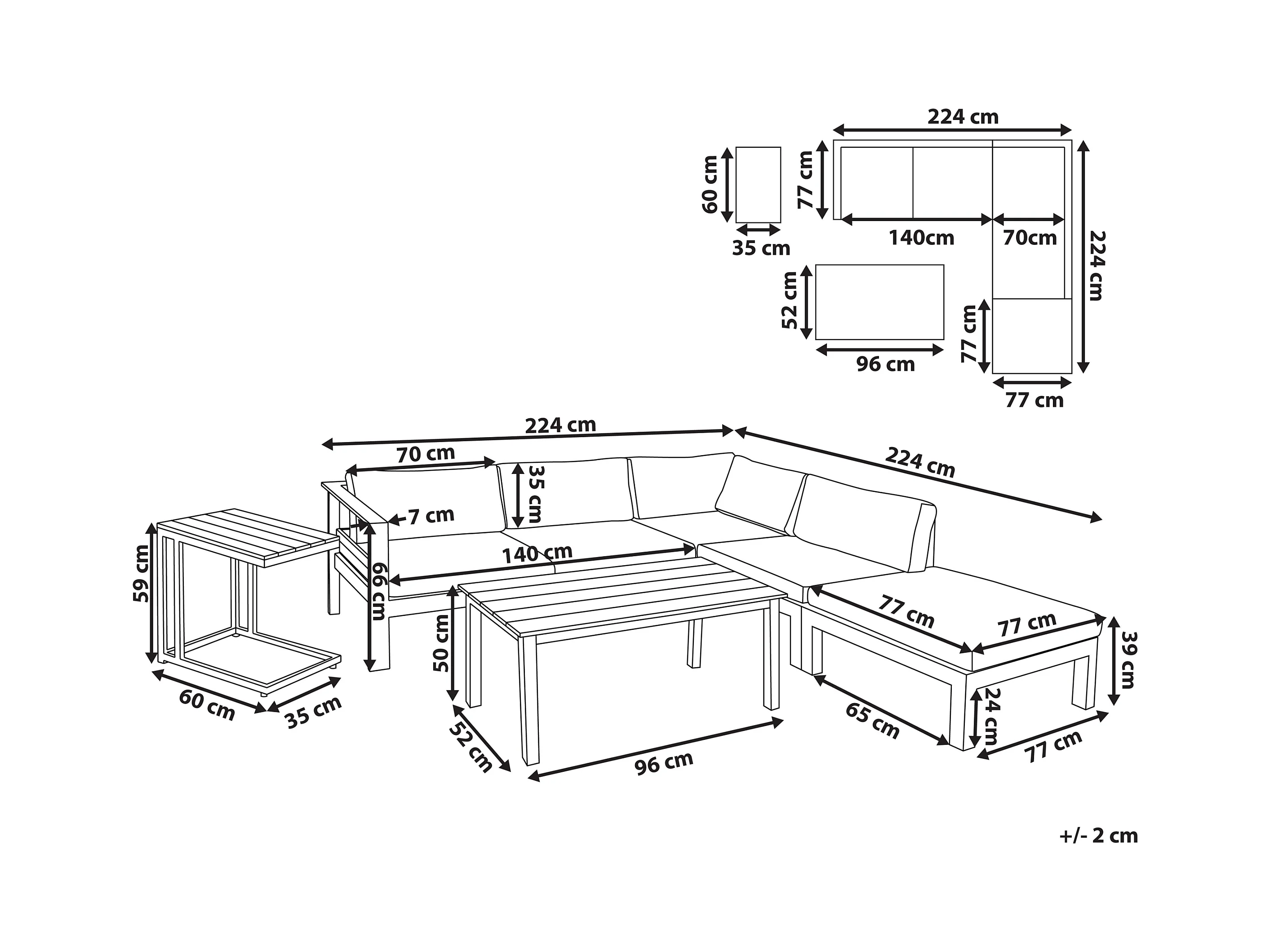 Ensemble de canapés d'angle de jardin 5 places MESSINA Côté droite Métal Beige