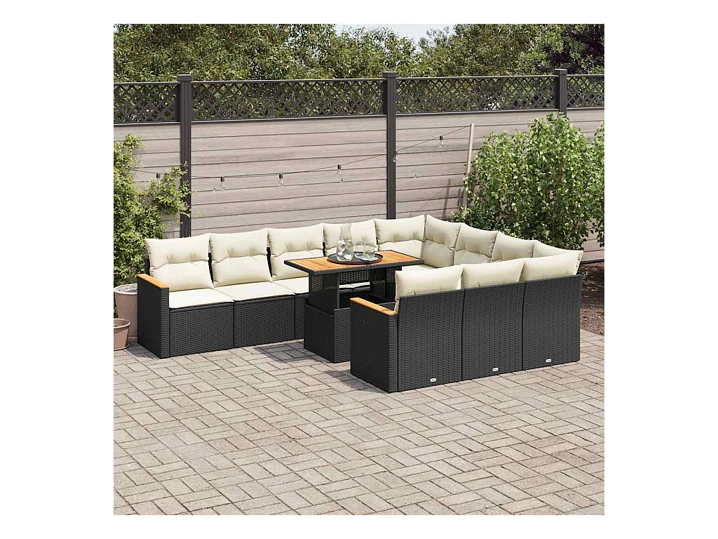 Ensemble de canapés de jardin 11 pièces et coussins rotin acacia
