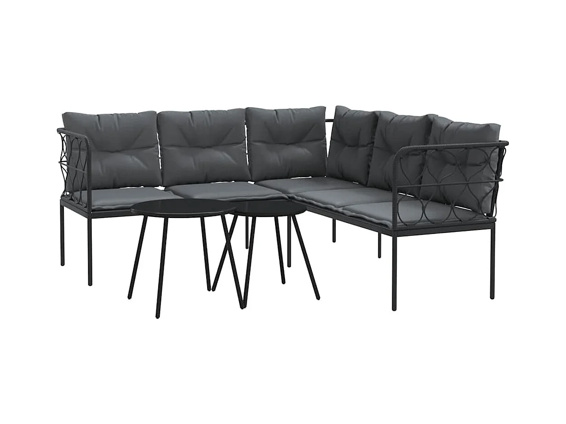 Ensemble de canapés de jardin et coussins noir acier textilène