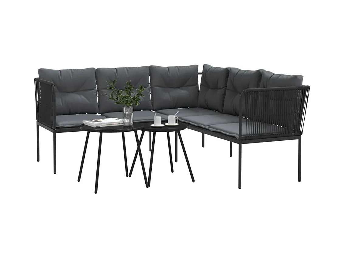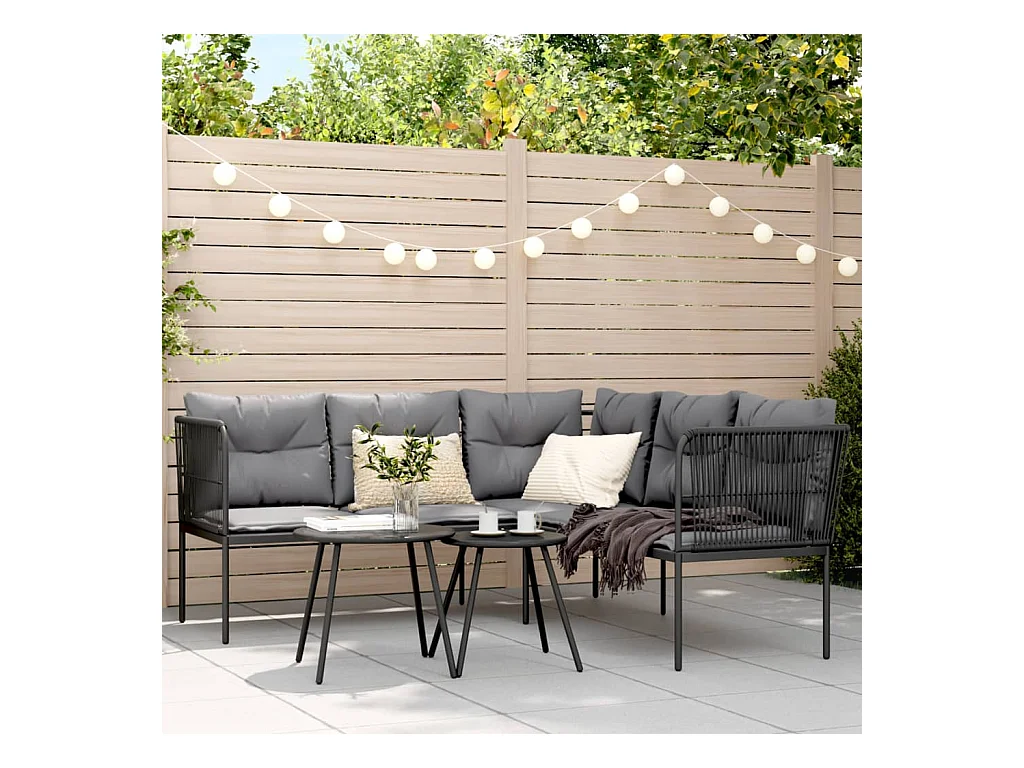 Ensemble de canapés de jardin et coussins noir acier textilène