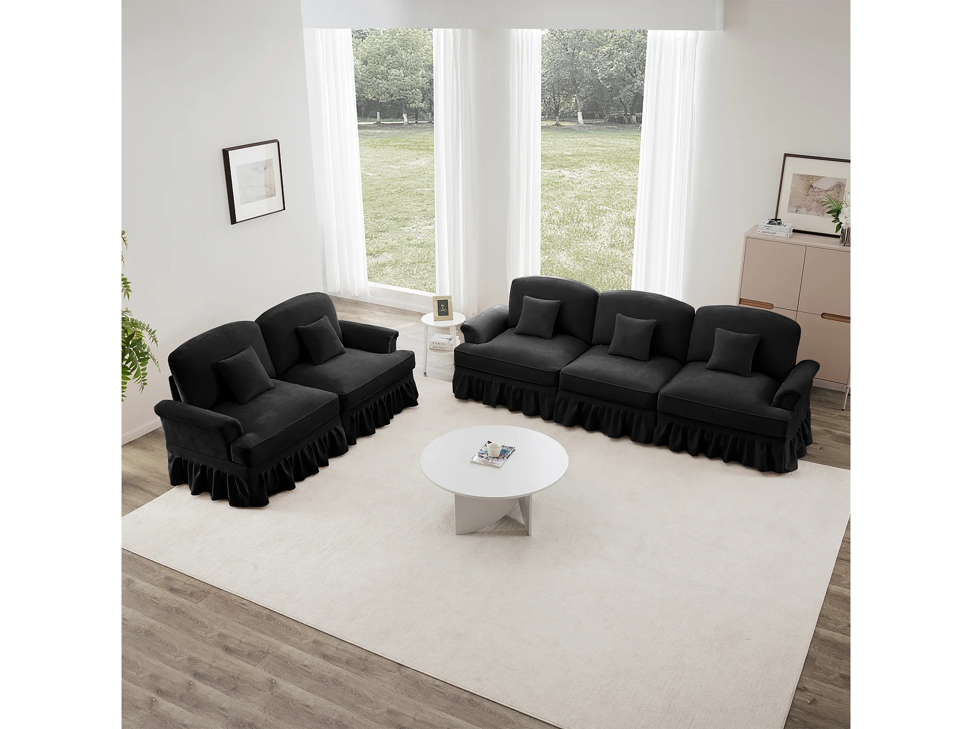 Ensemble de canapés Design élégant dossiers courbés Pieds fuselés Chenille noir