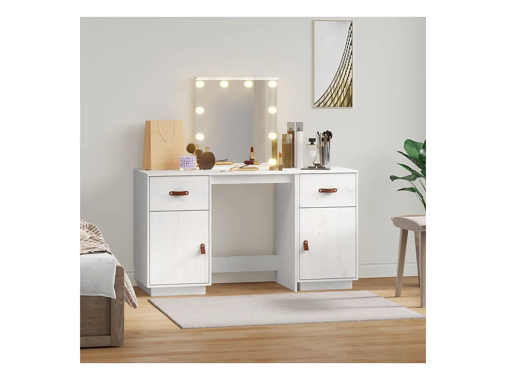 Ensemble de coiffeuse avec LED Blanc Bois de pin solide FR130275