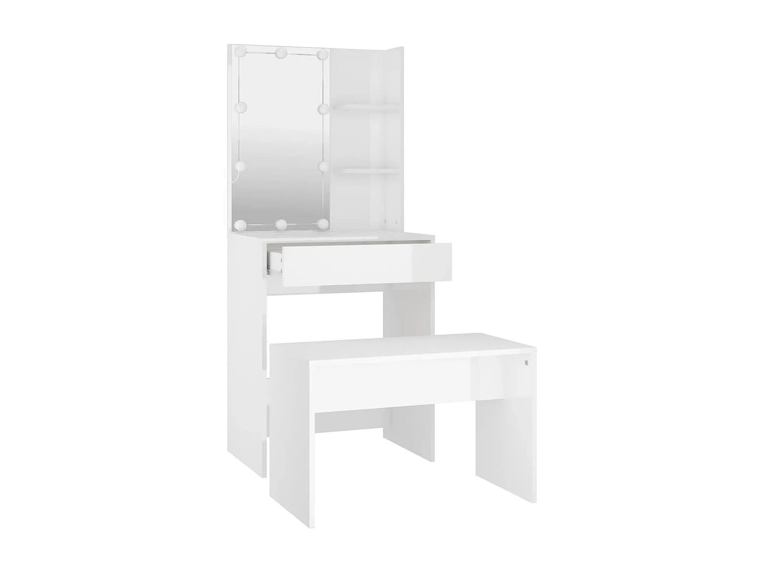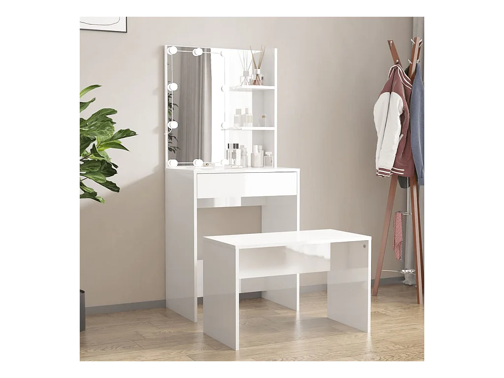 Ensemble de coiffeuse avec LED Blanc brillant Bois d'ingénierie