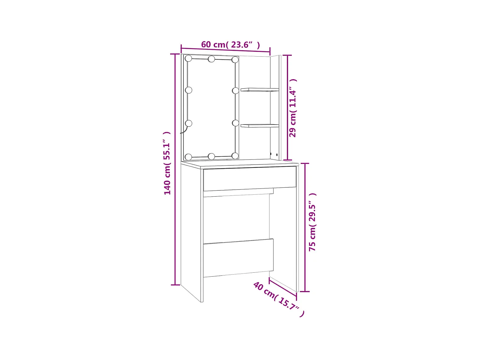 Table de maquillage avec éclairage LED MDF Blanc brillant