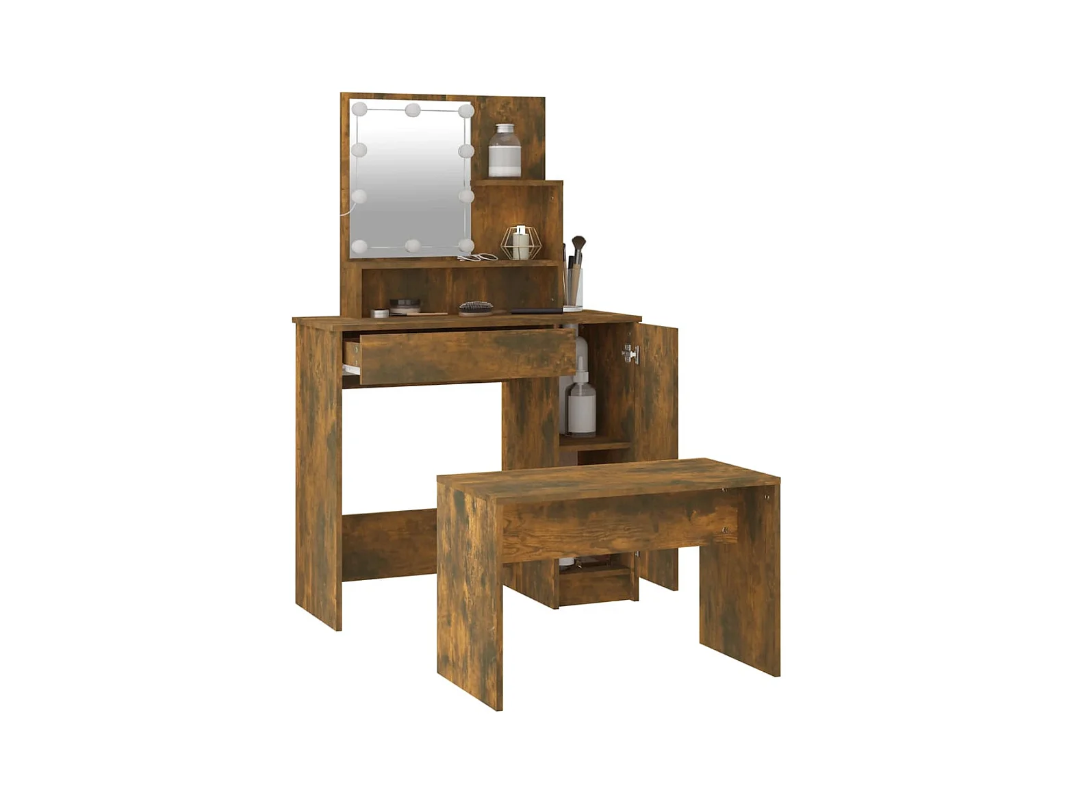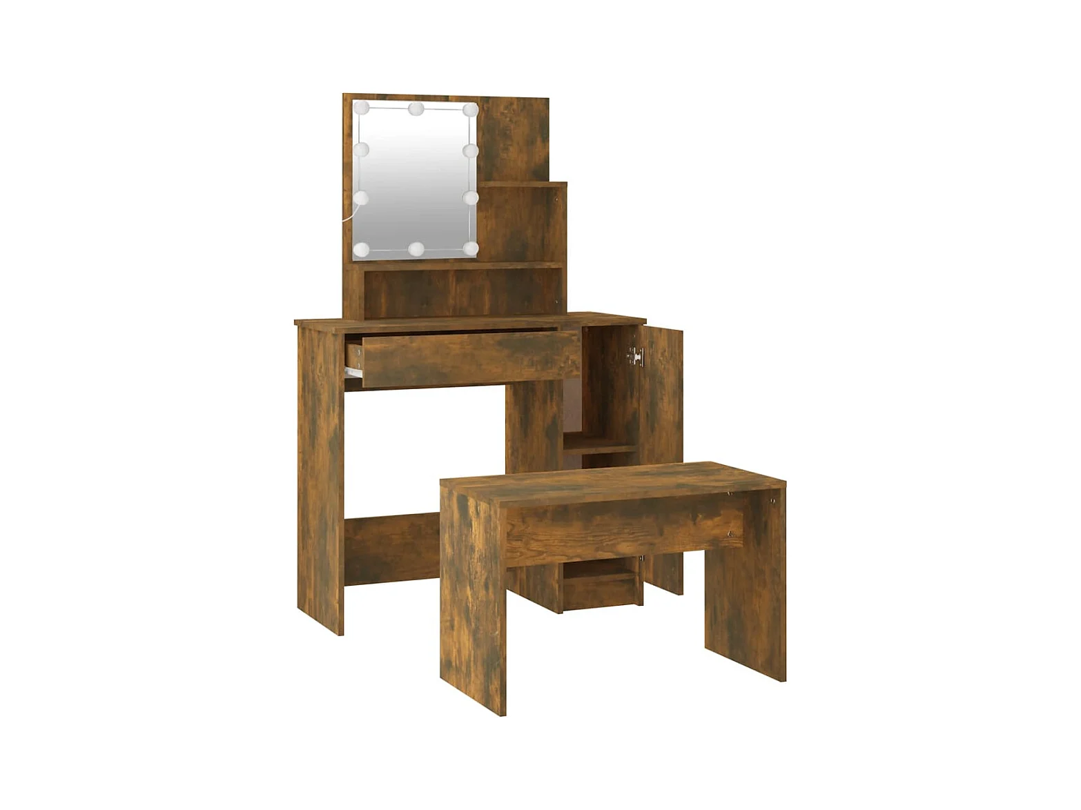 Coiffeuse à LED avec armoire Chêne fumé Bois d'ingénierie