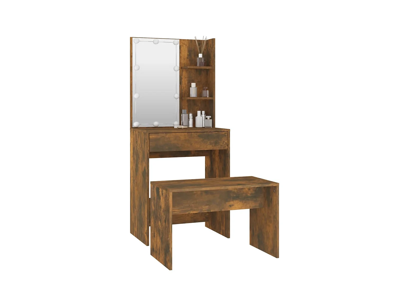 Ensemble de coiffeuse avec LED Chêne fumé Bois d'ingénierie OFR87401 BonneVie Meuble