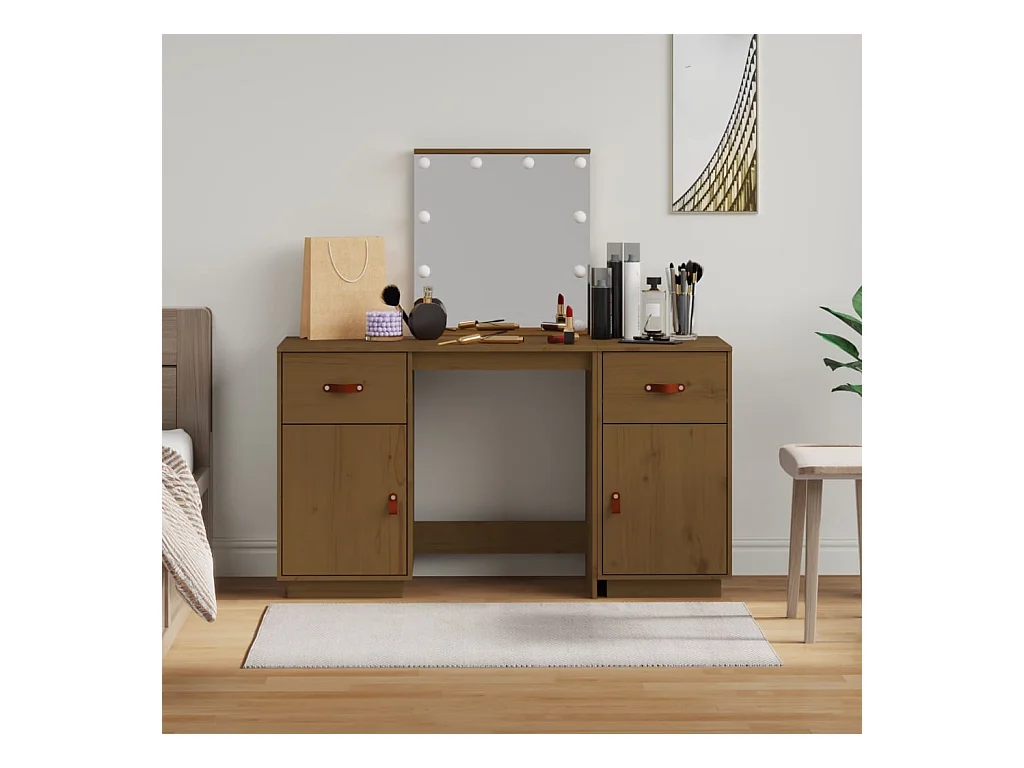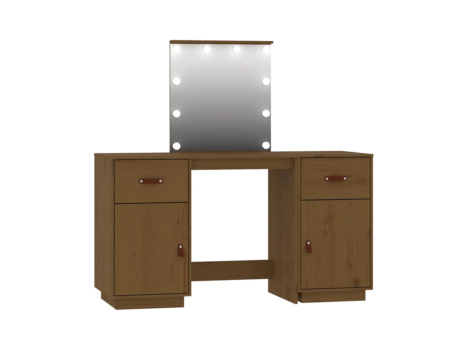 Ensemble de coiffeuse avec LED Marron miel Bois de pin solide