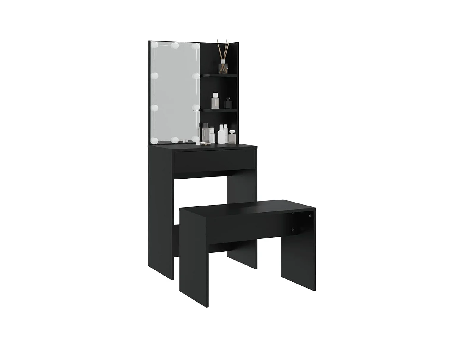 Ensemble de coiffeuse avec LED Noir Bois d'ingénierie OFR48934 BonneVie Meuble