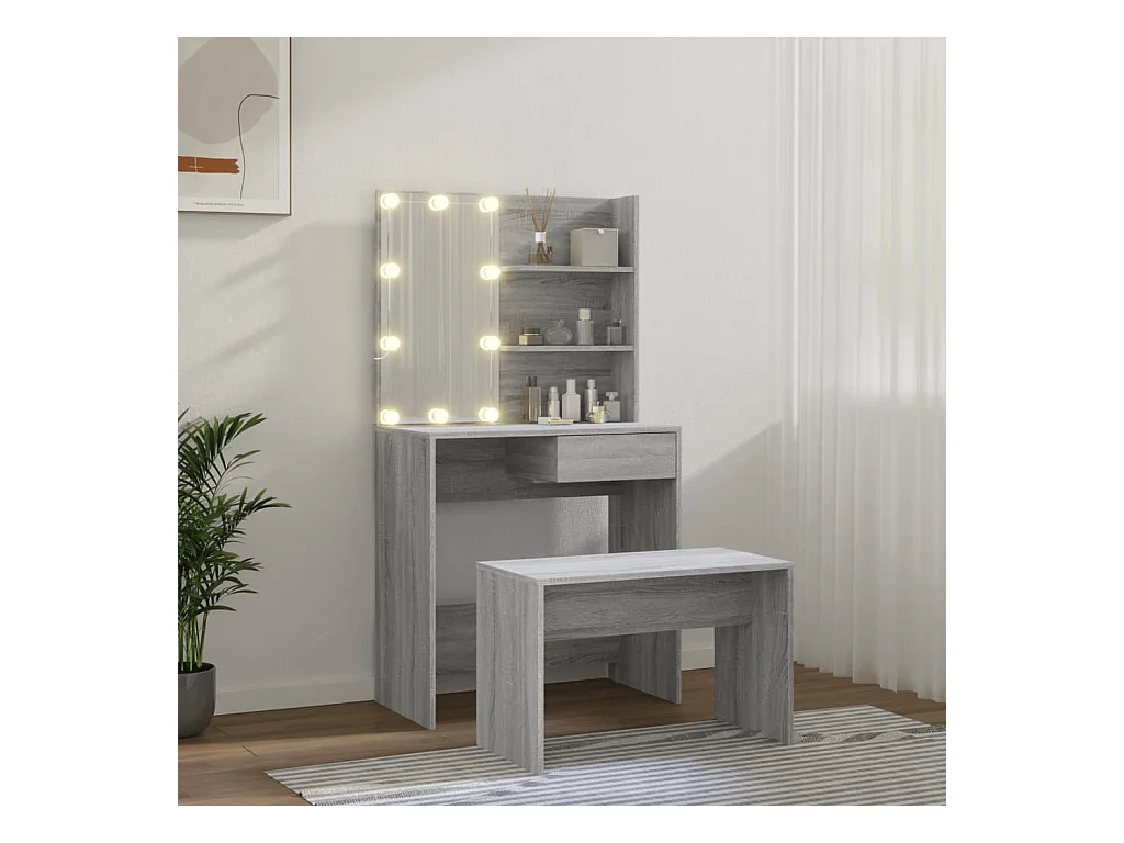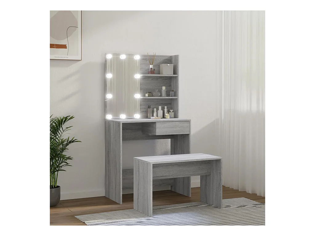 Ensemble de coiffeuse avec LED Sonoma gris Bois d'ingénierie FR437193