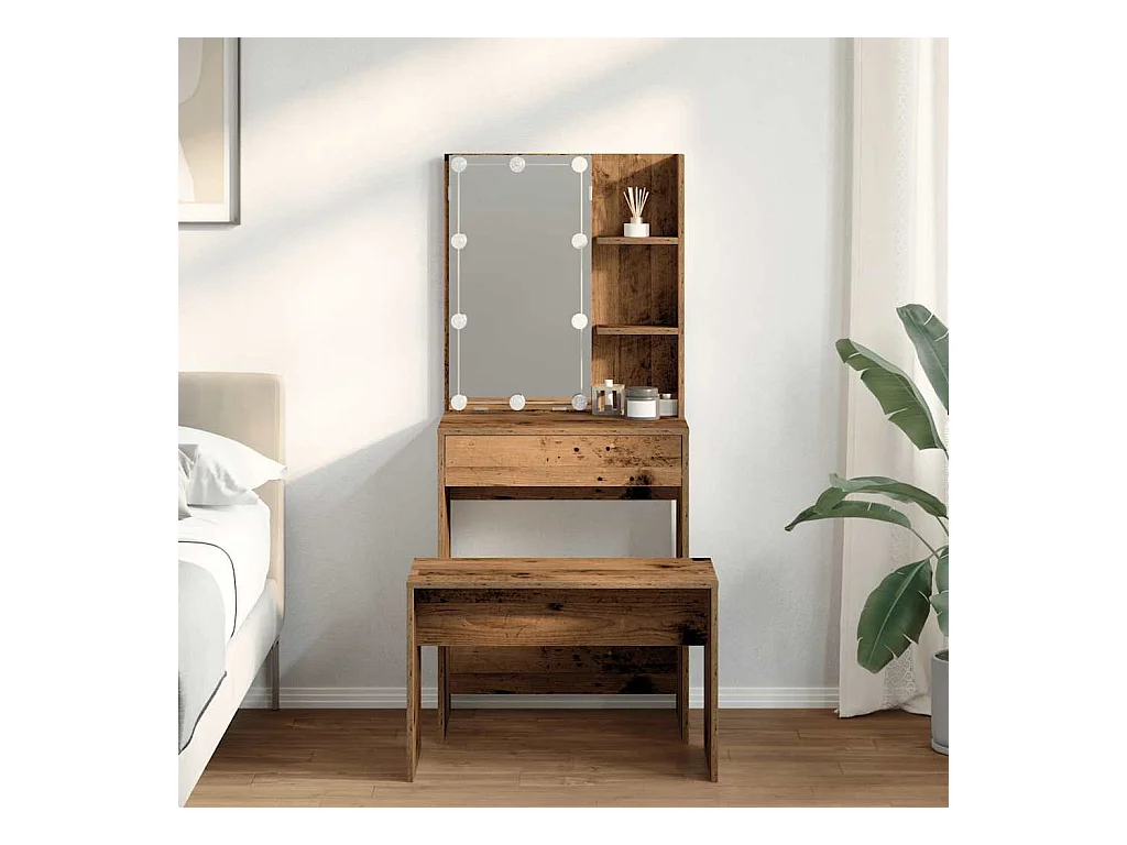 Ensemble de coiffeuse avec LED vieux bois bois d'ingénierie