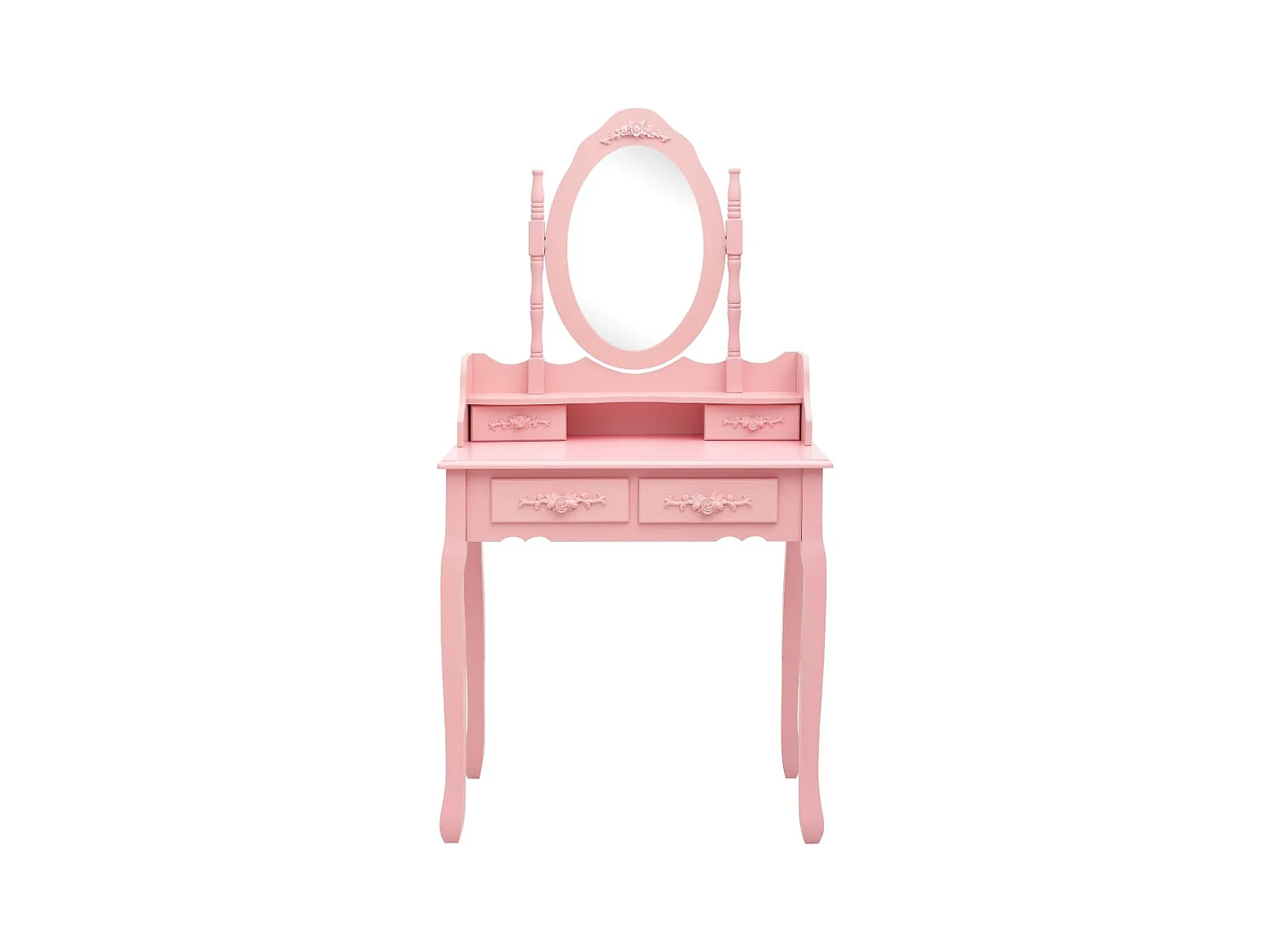 Coiffeuse avec tabouret et miroir pliable en 3 Rose FR238504
