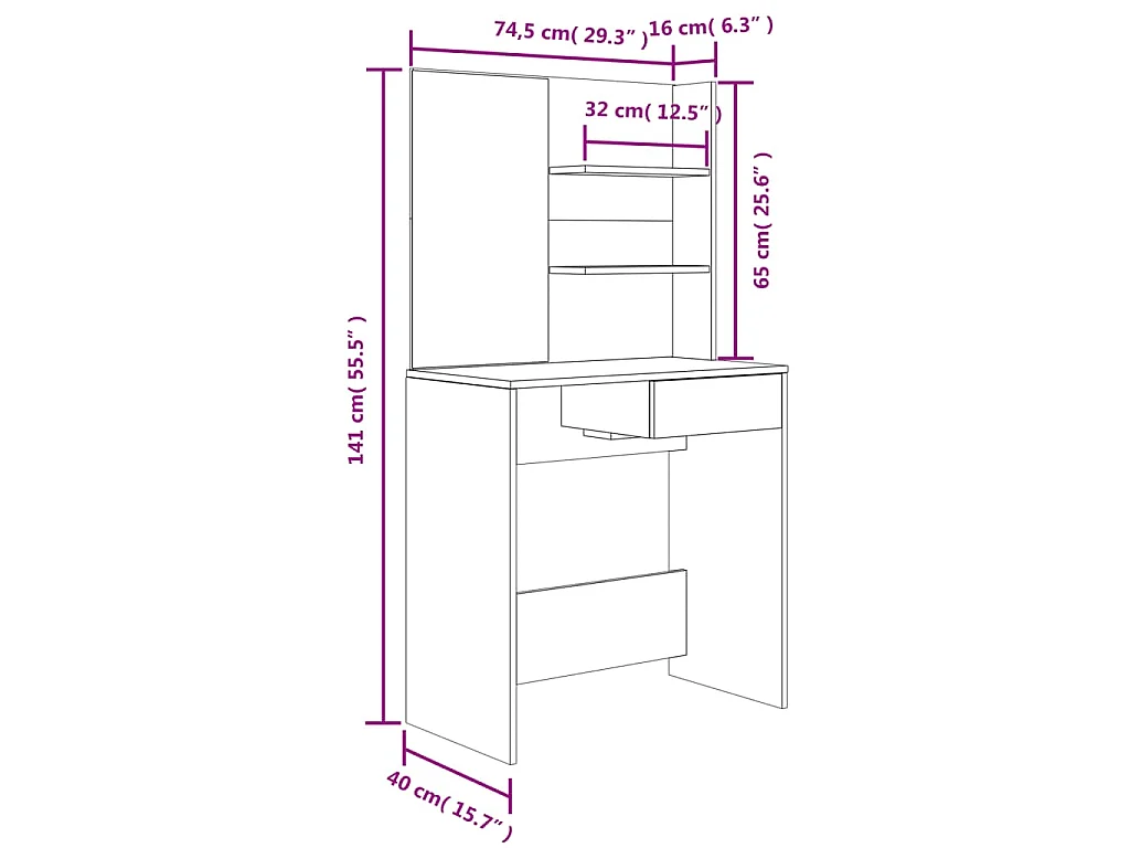 Ensemble de coiffeuse noir 74,5x40x141 cm