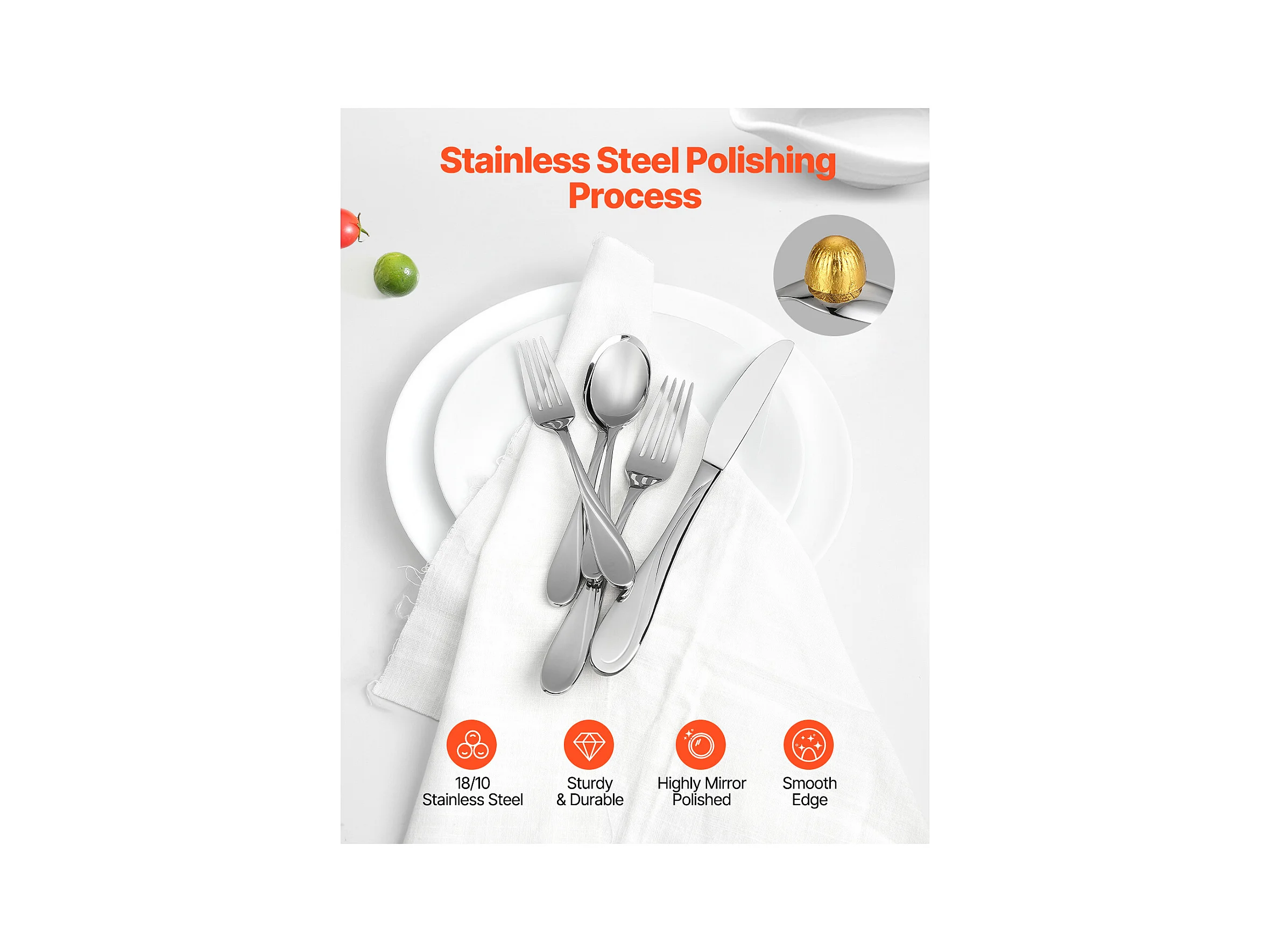 Ensemble de Couverts SucceBuy Ensemble de Couverts en Acier Inoxydable de 30 Pièces, Vaisselle Durable avec Finition Miroir, Vaisselle Lavable au Lave-Vaisselle