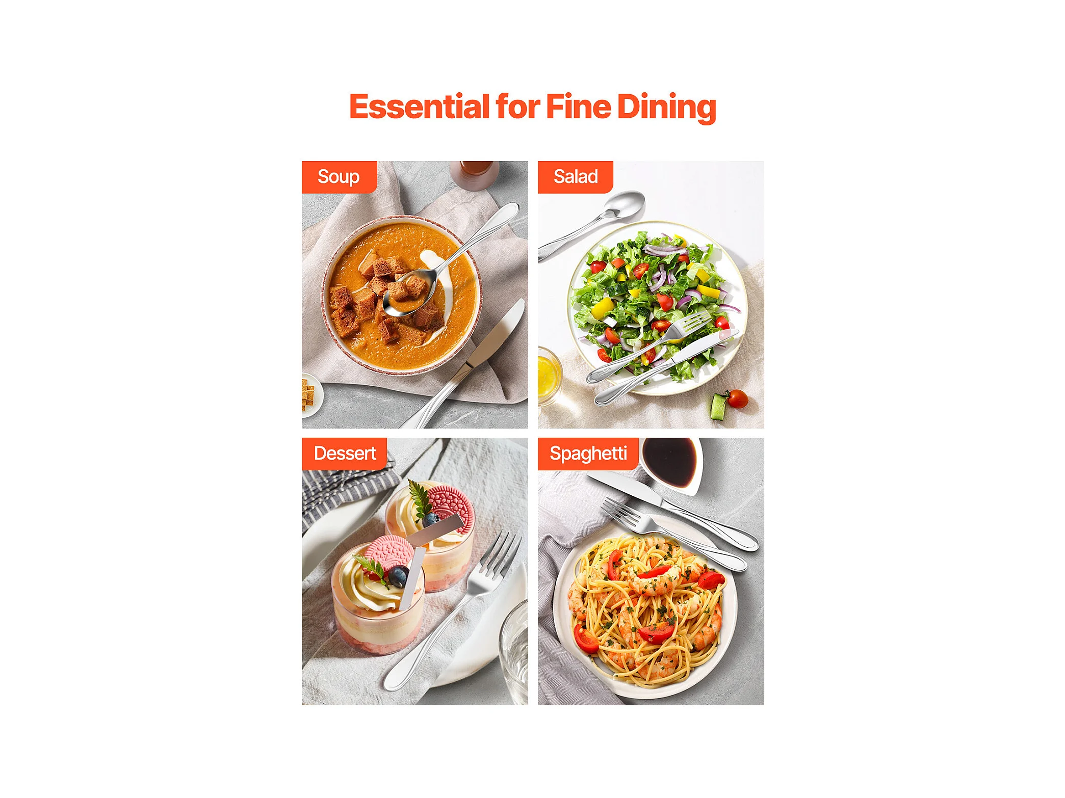 Ensemble de Couverts SucceBuy Ménagère 45 Pièces en Acier Inoxydable, Couverts pour 8 Personnes, Ustensiles de Cuisine.