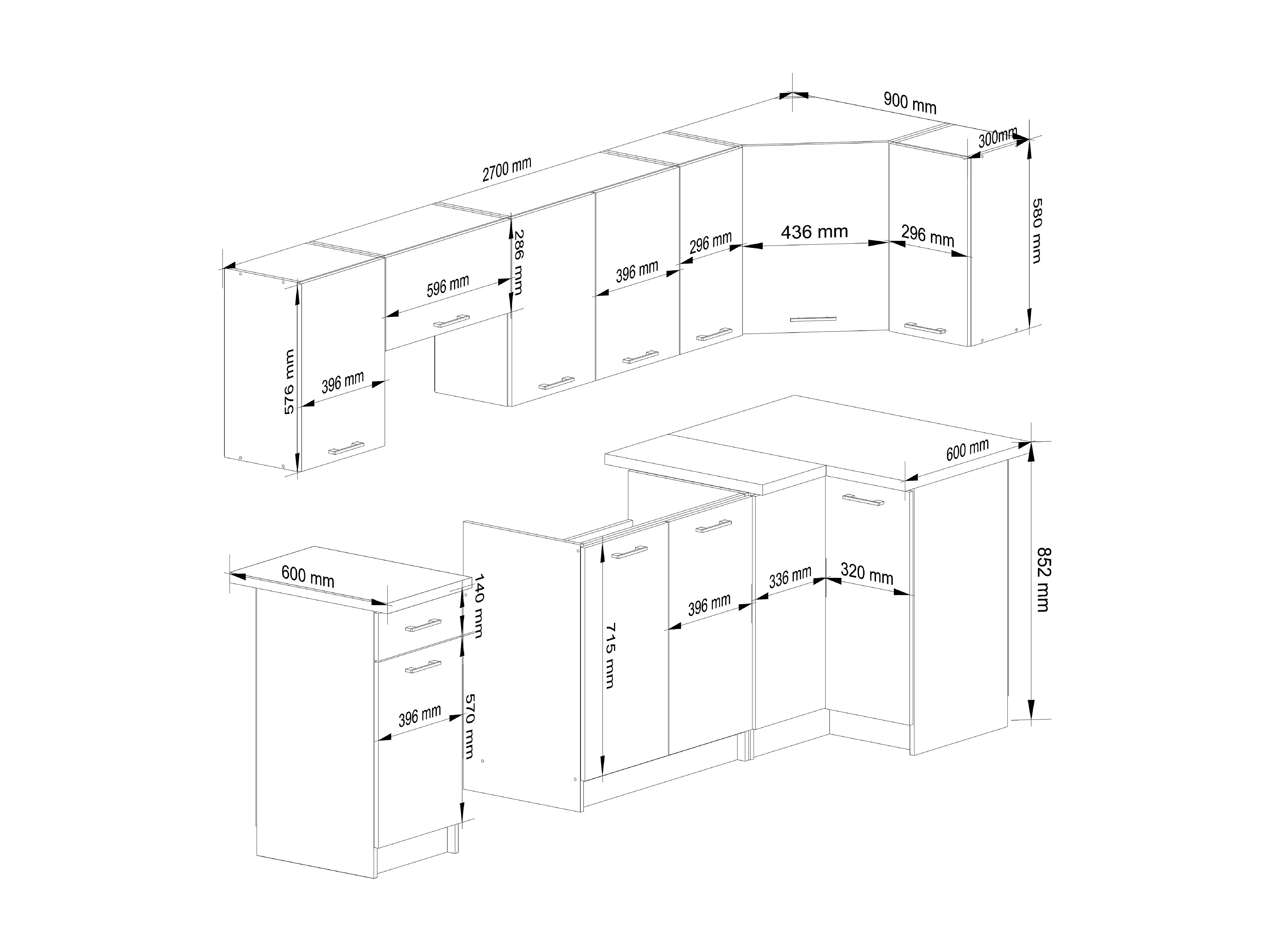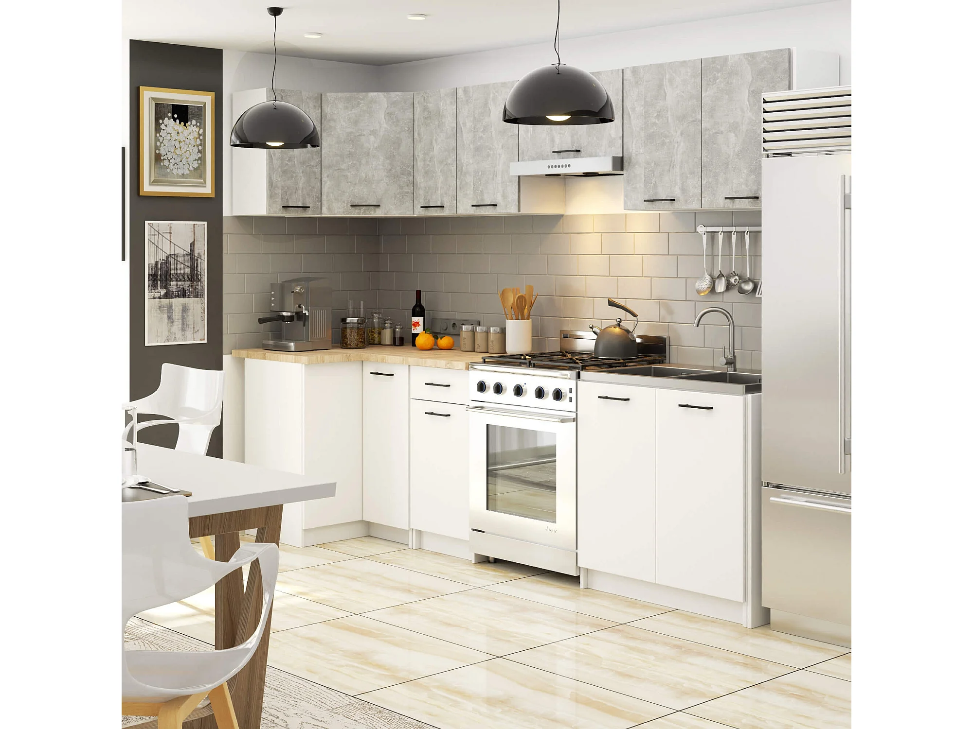 Ensemble De Cuisine AKORD OLIWIA 3.0m Béton 300 cm 11 portes 1 tiroir façade Blanche 300x46x203 cm
