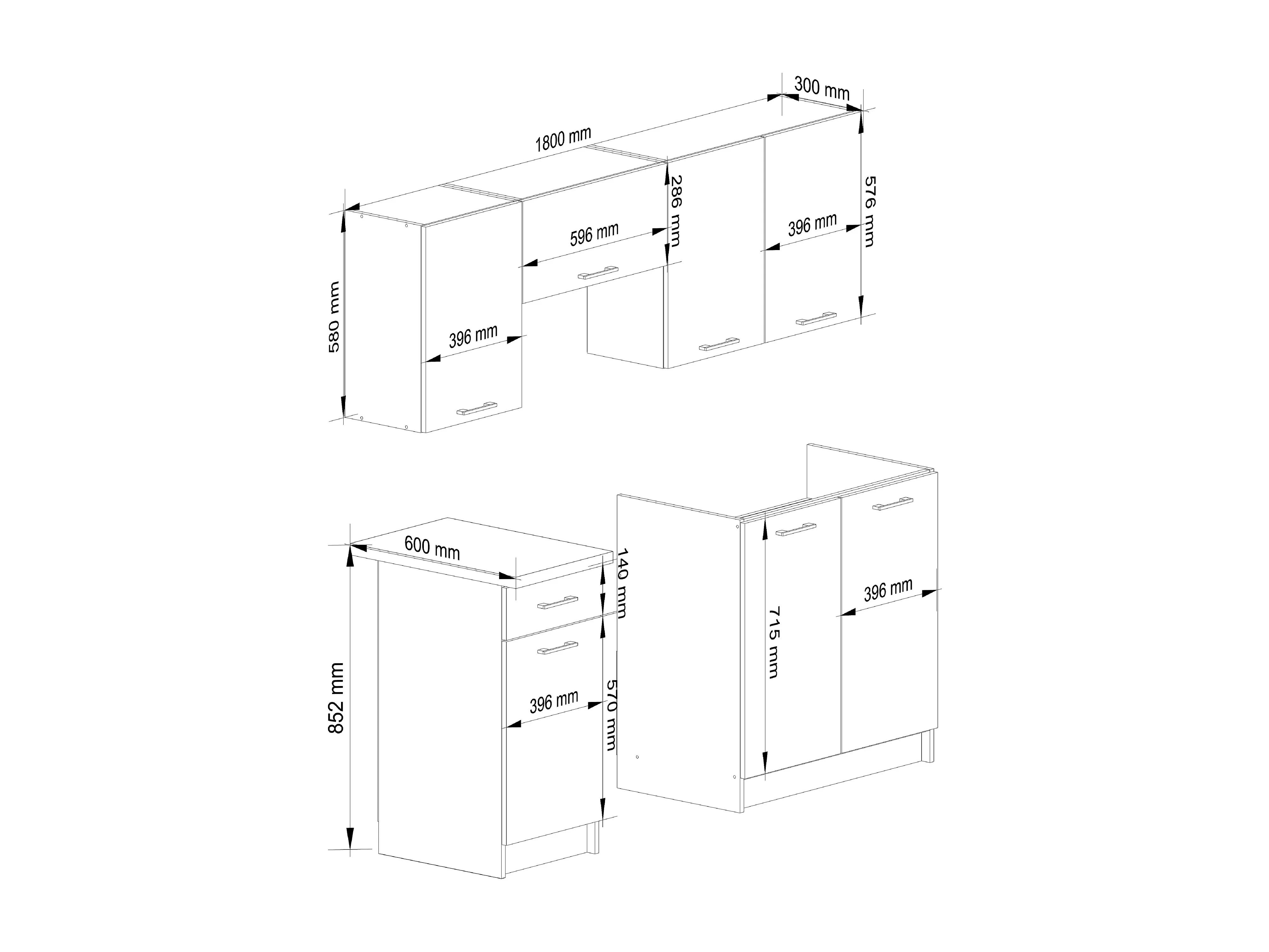 Ensemble De Cuisine AKORD OLIWIA 1.8m Blanc 180 cm 7 portes 1 tiroir façade Blanche 8 étagères 180x46x203 cm