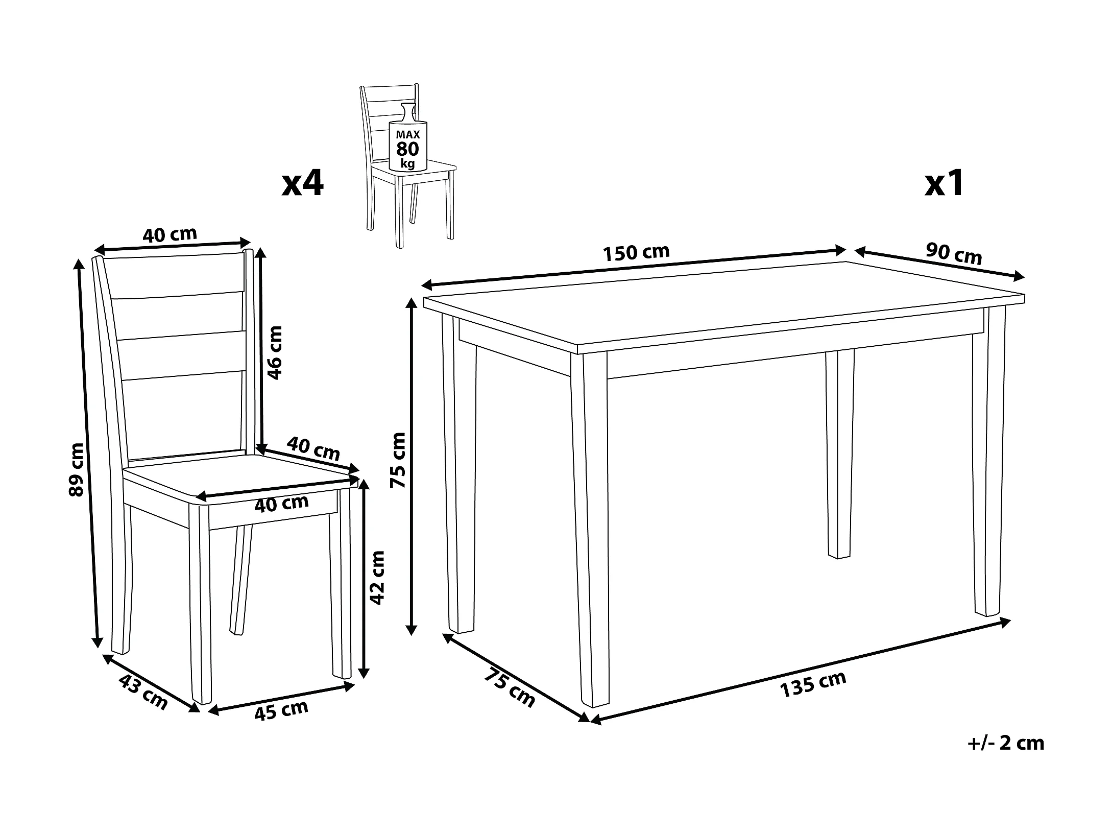 Ensemble de cuisine Table et 4 chaises en bois GEORGIA