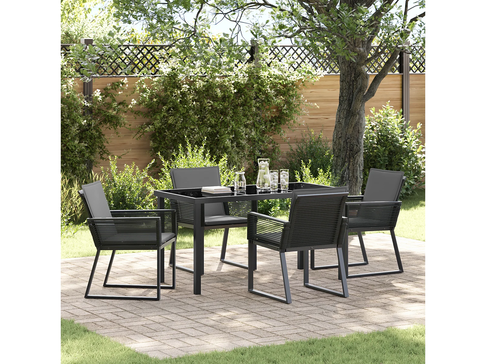 Ensemble de dining de jardin 5 pièces avec coussins Noir Rattan poly