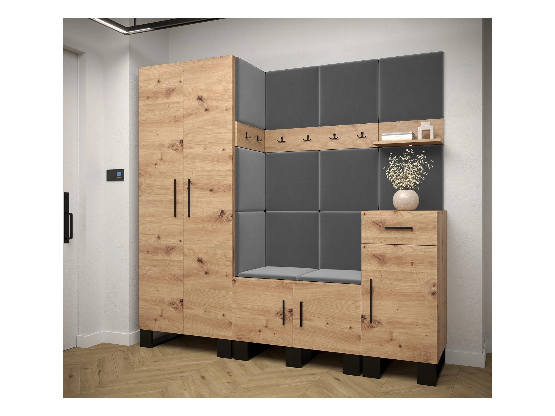 Ensemble de garde-robe Artin 1 196/200/46 (Chêne artisanal/Manila 16)