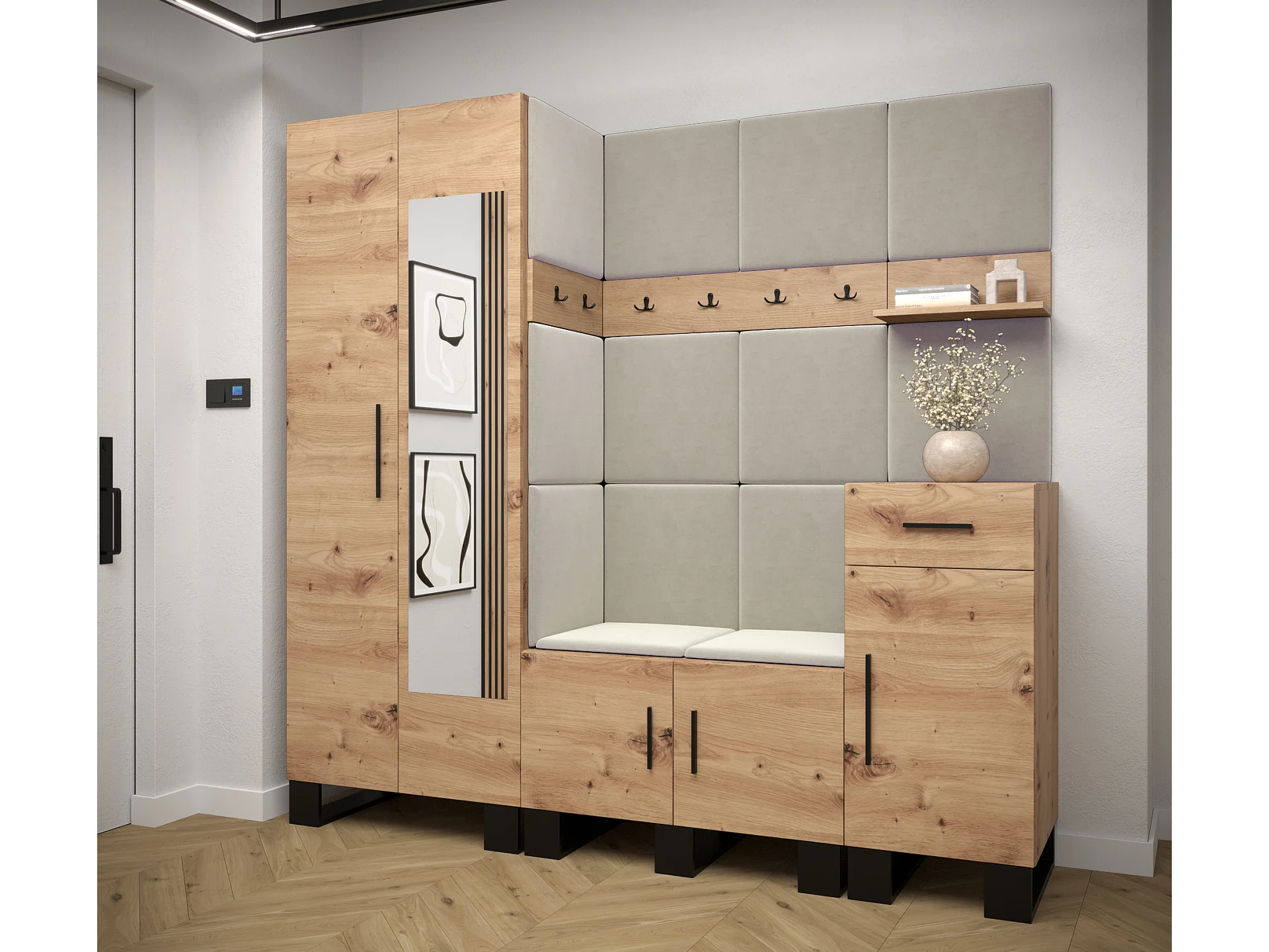 Ensemble de garde-robe Artin 13 196/200/46 (Chêne artisanal/Manila 02)