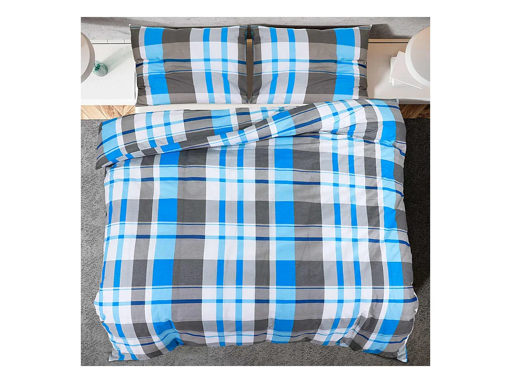 Ensemble de housse de couette Bleu et gris 200x200 cm Coton FR438667