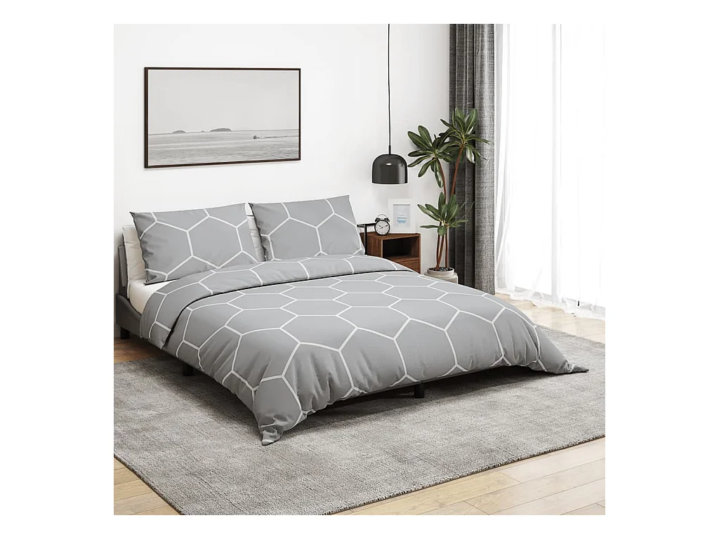 Ensemble de housse de couette Gris 140x200 cm Coton FR423242
