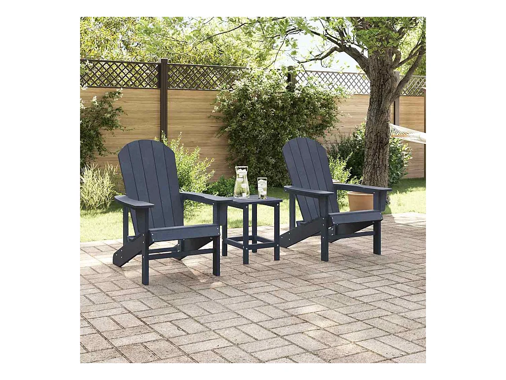Ensemble de Jardin 3 Pièces Bleu Marine HDPE