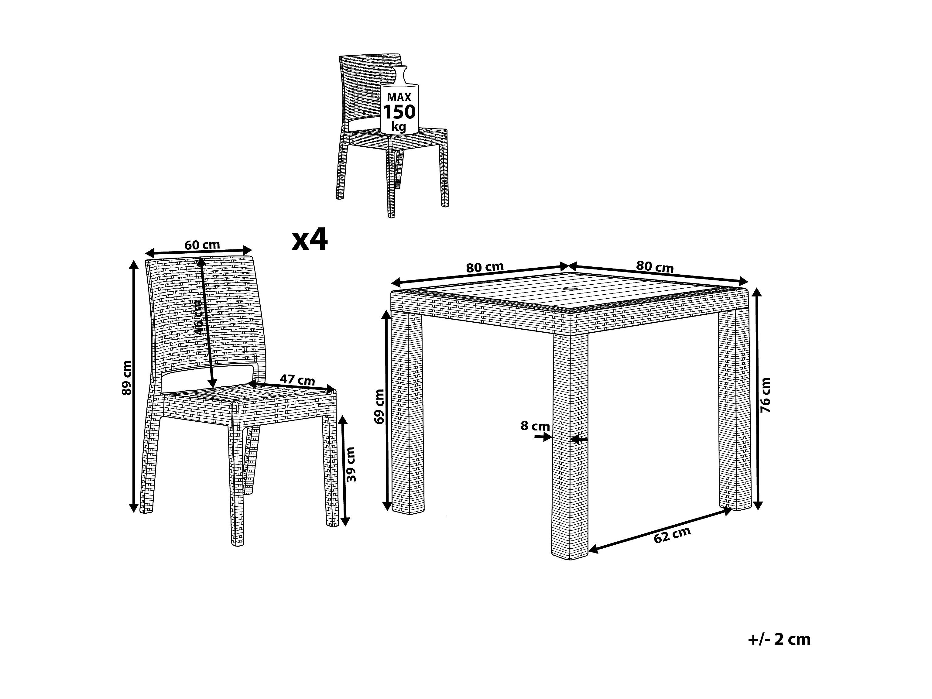 Salle à manger de jardin 4 places FOSSANO Gris clair