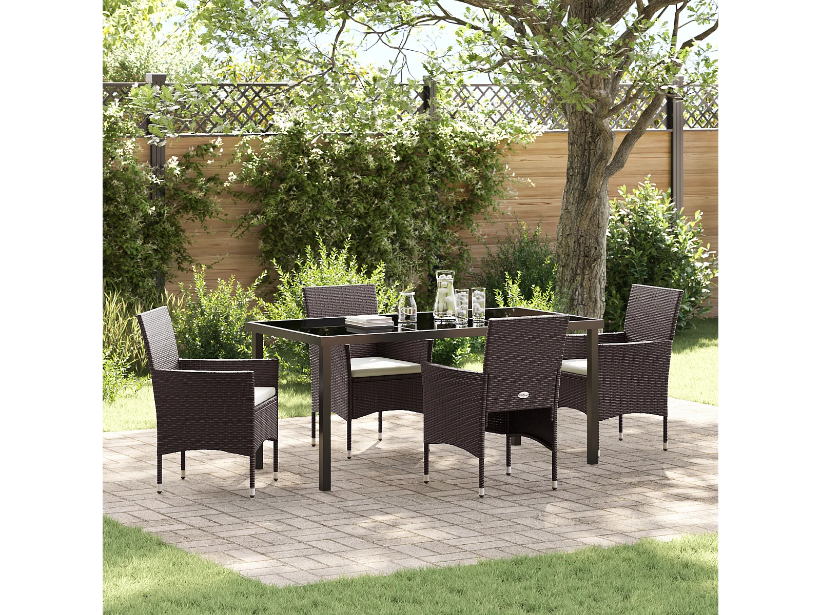 Ensemble de Jardin 5 Pièces Marron Rotin Poly