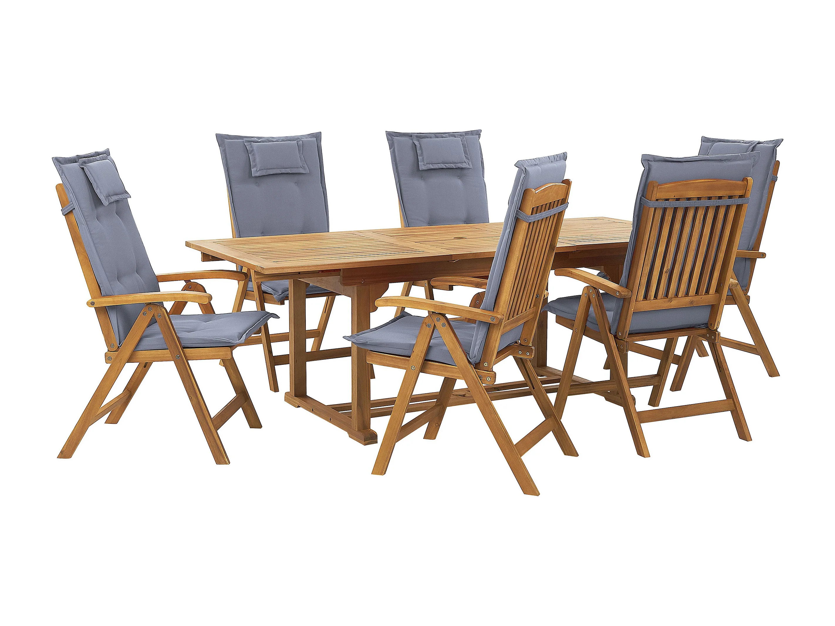 Salle à manger de jardin 6 places JAVA avec coussins Acacia Bleu