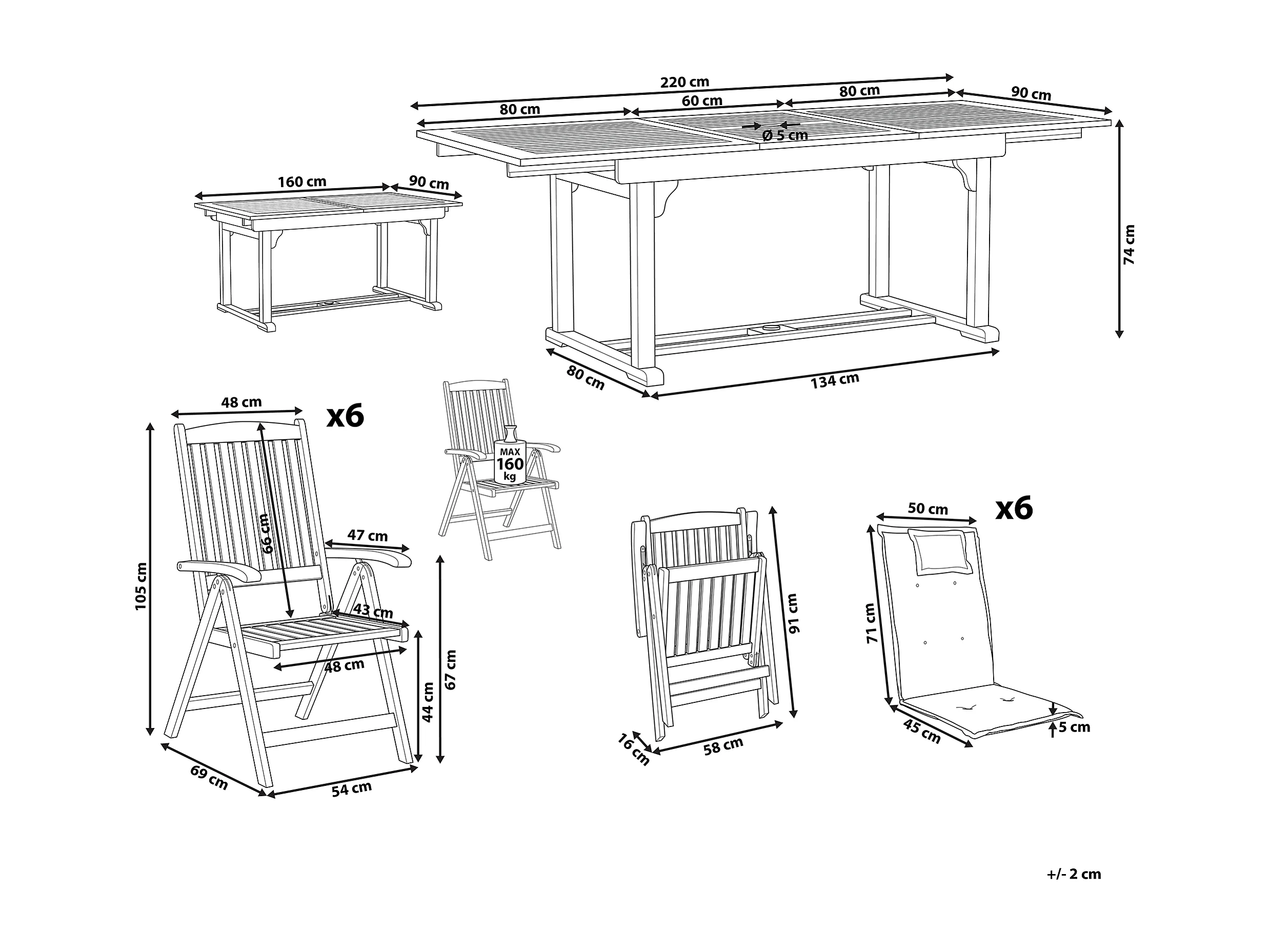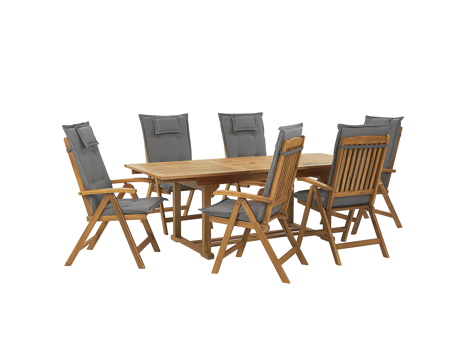 Salle à manger de jardin 6 places JAVA avec coussins Acacia Gris graphite