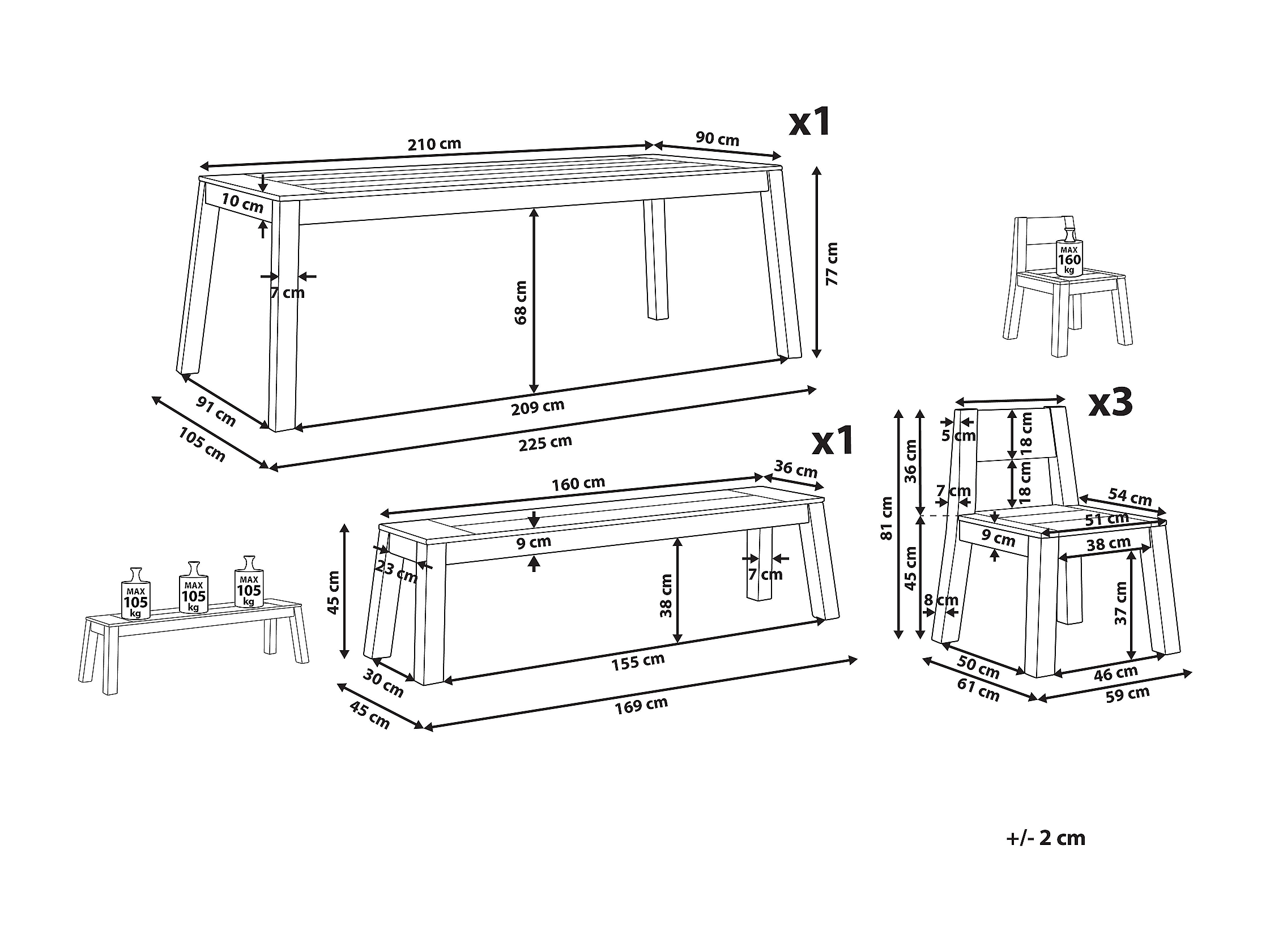 Salle à manger de jardin avec bancs 6 places MONSANO Bois d'eucalyptus Marron