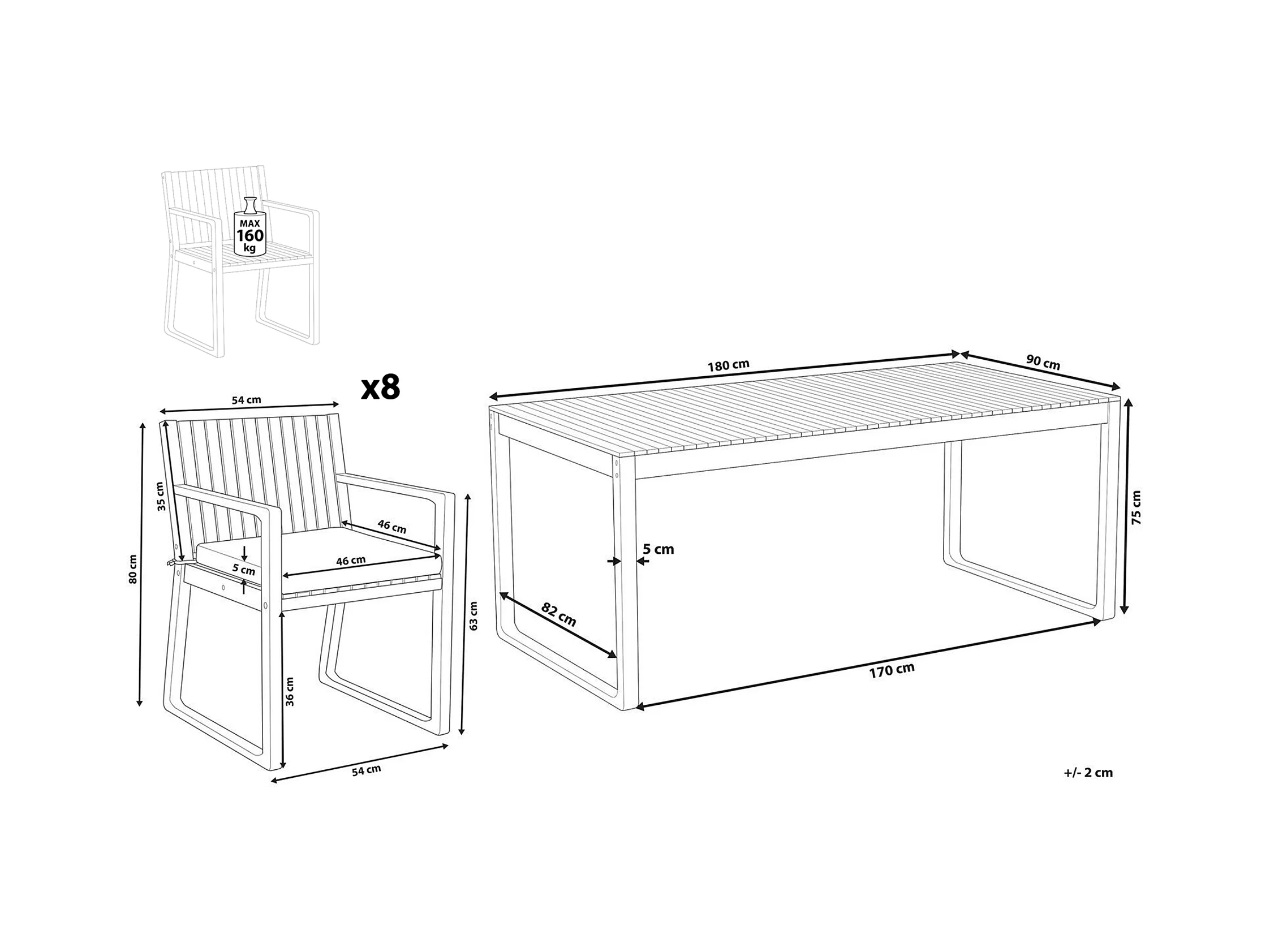 Salle à manger de jardin 8 places SASSARI avec coussins Acacia Bleu