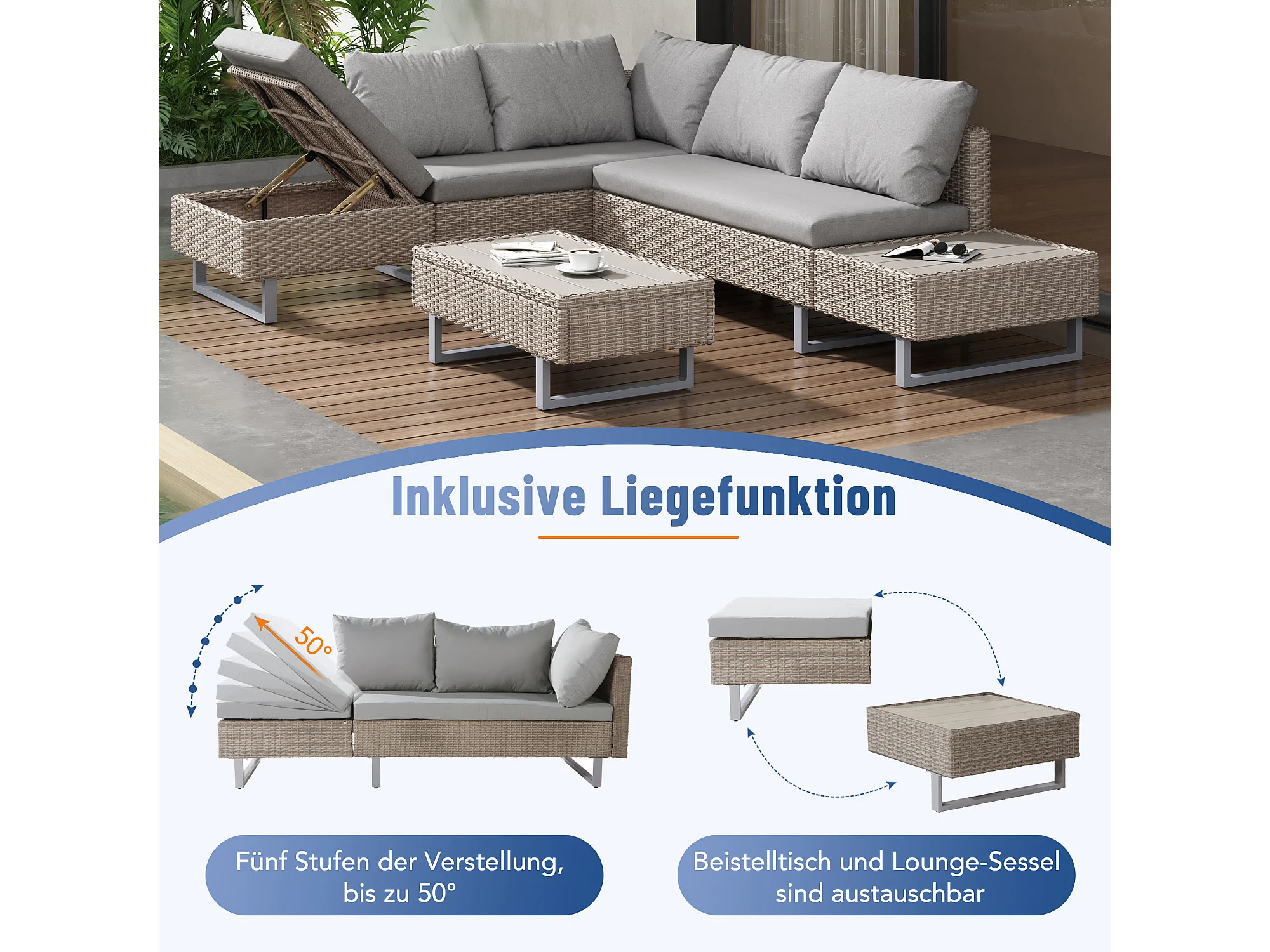 Ensemble de jardin avec canapé d'angle, table et coussins pour 4-5 personnes, déhoussable, couleur kaki