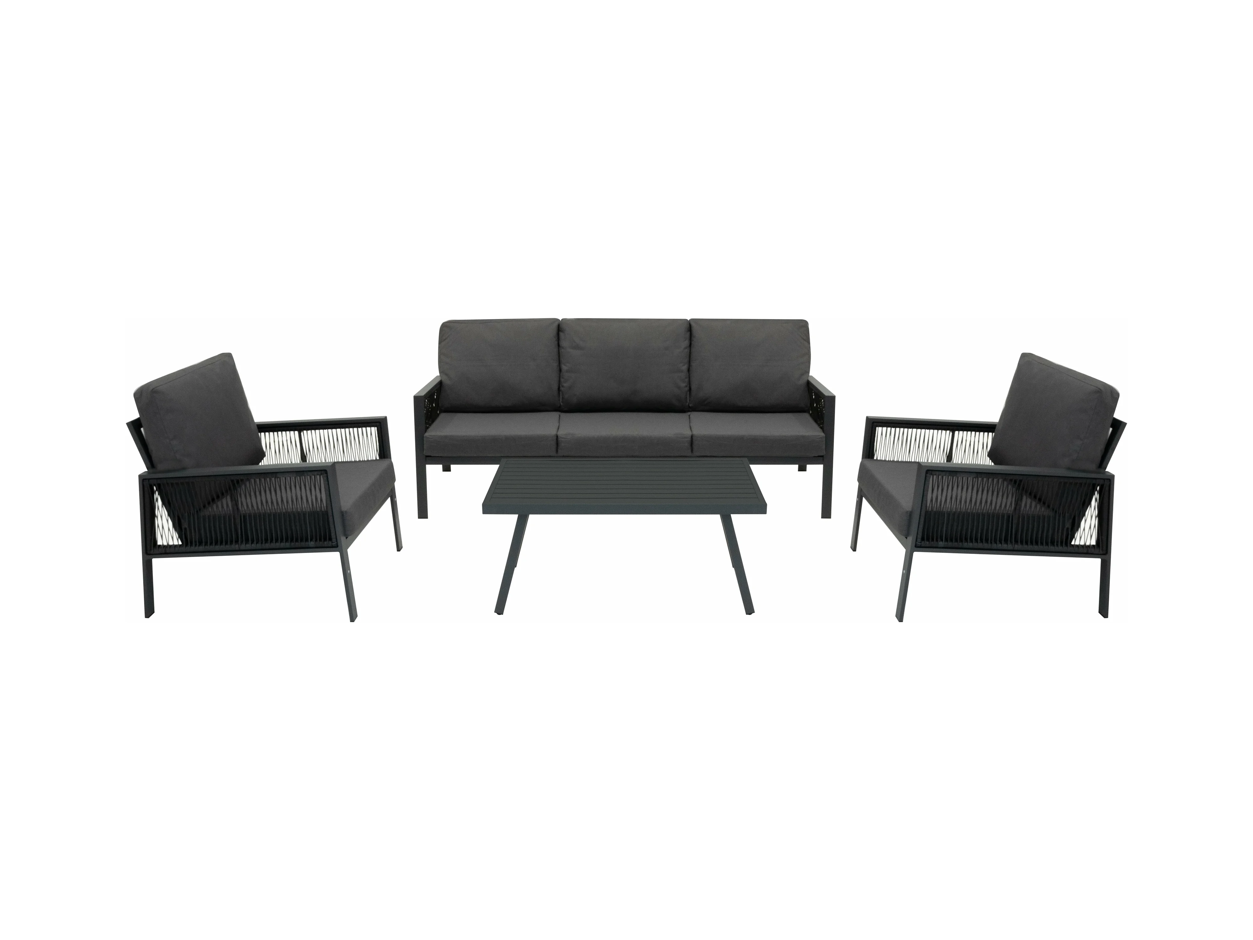 Ensemble de Jardin En Aluminium Gris 4 Pièces Salon de 3 Places Extérieur Modulaire Fauteuils Table Basse (Housse de Pluie INCLUS)