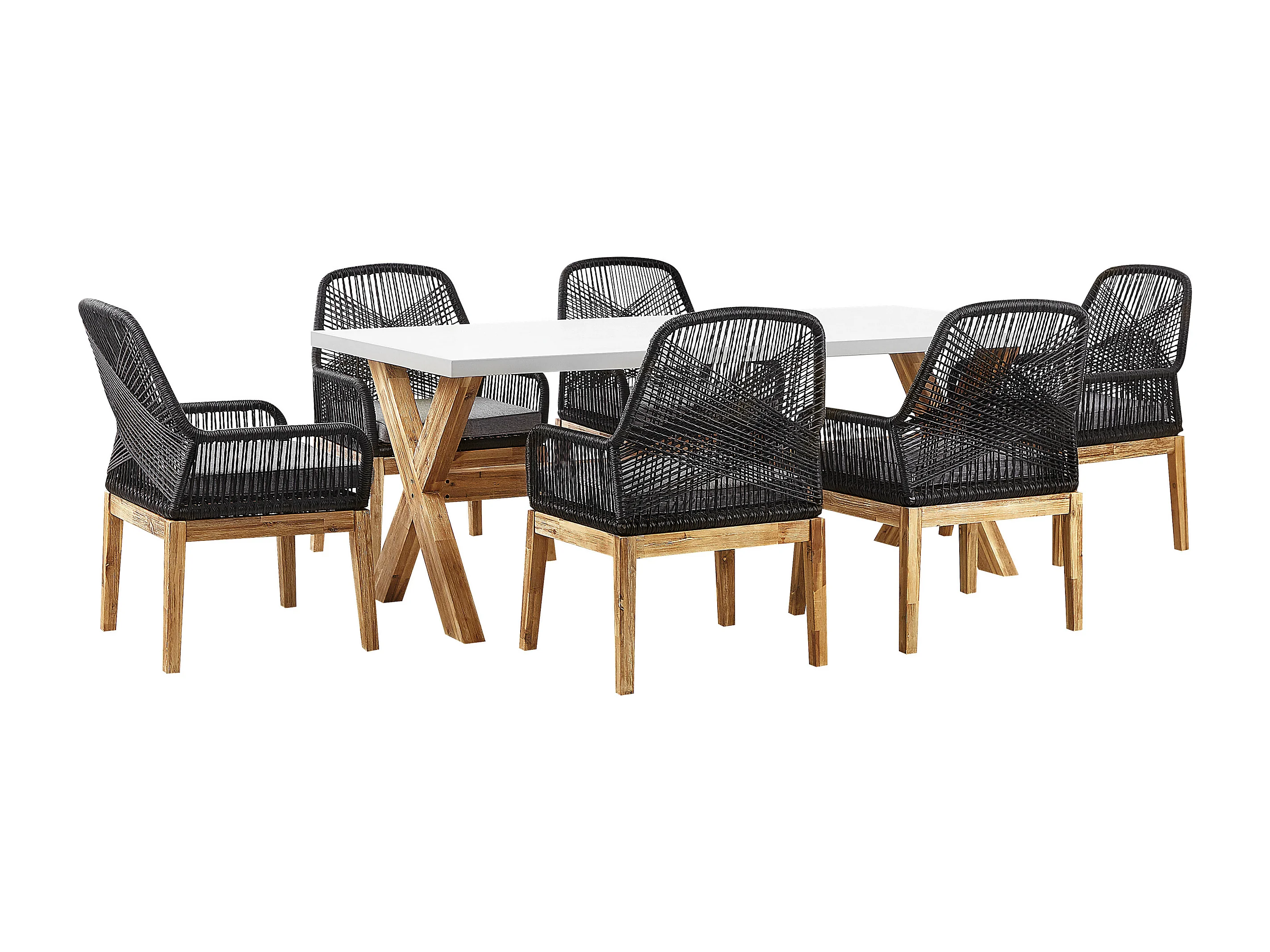 Salle à manger de jardin 6 places OLBIA avec coussins Béton Noir