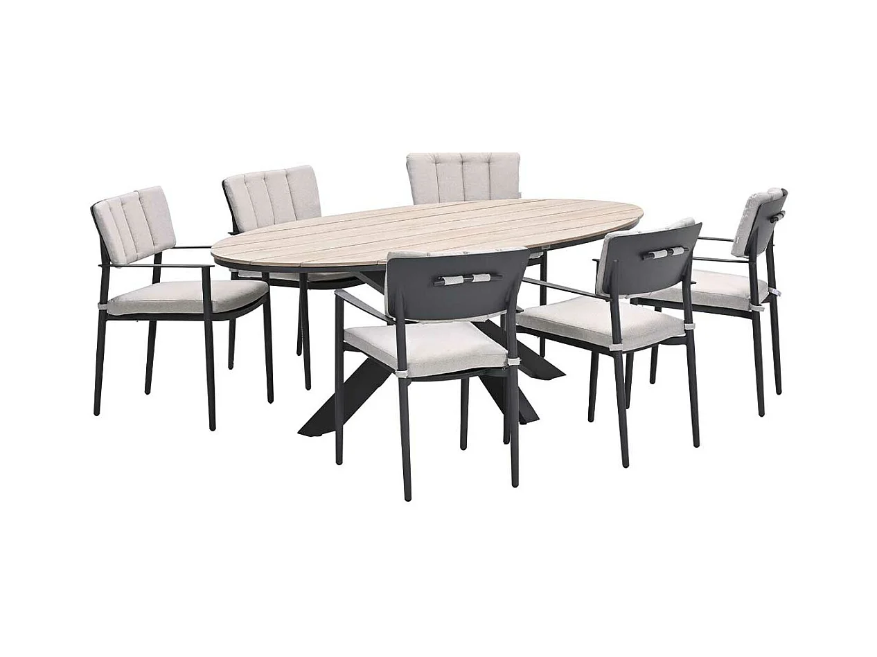 Ensemble de jardin Garden Impressions Tineo - Tulli - gris foncé - 220x115 cm - 7 pièces