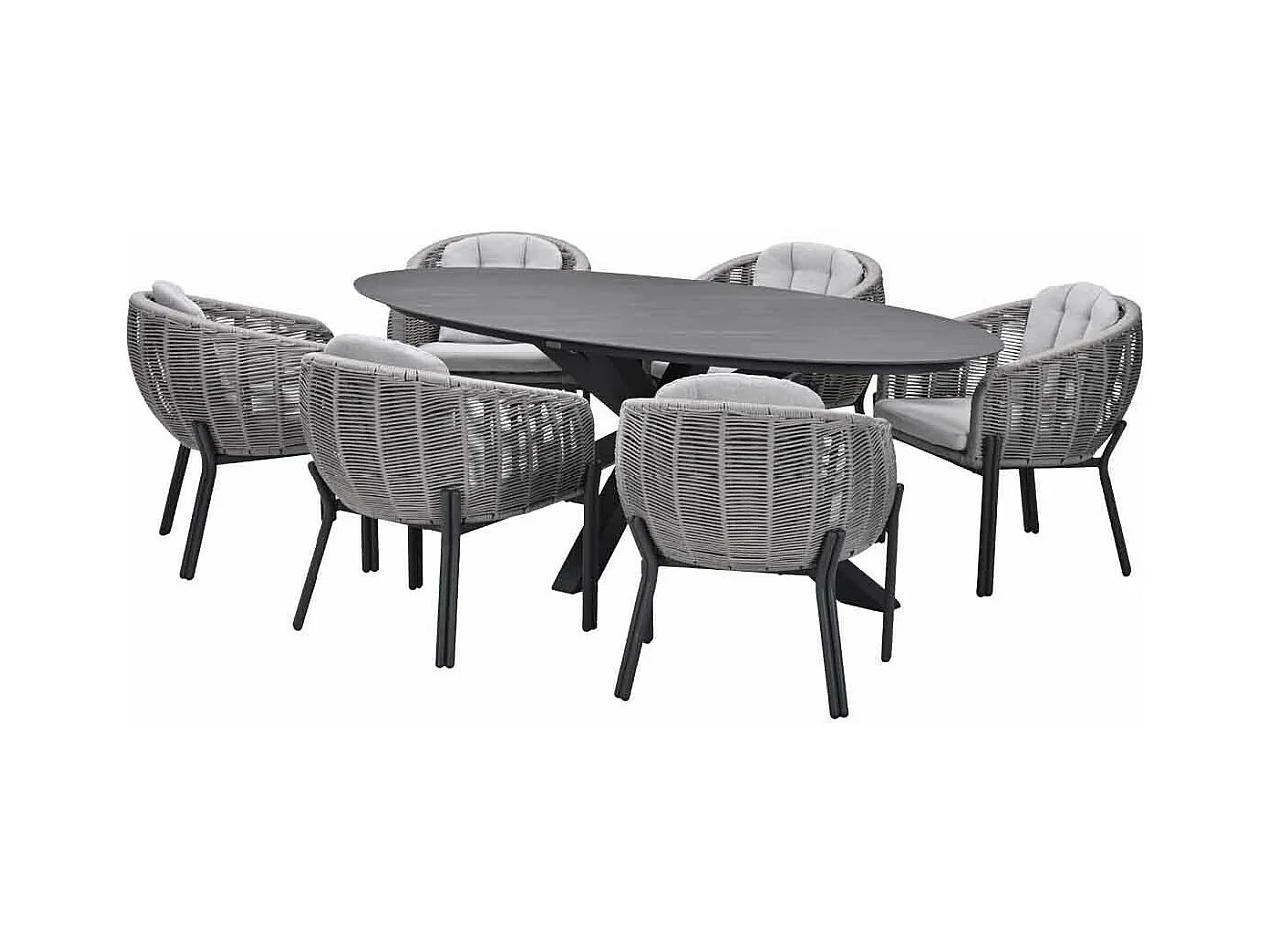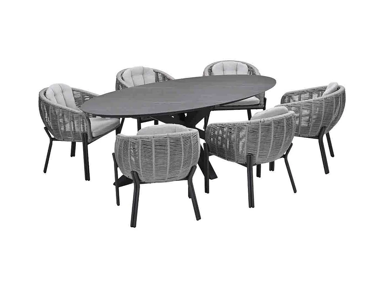 Ensemble de jardin Garden Impressions Tineo - Tulli - gris foncé - 220x115 cm - 7 pièces