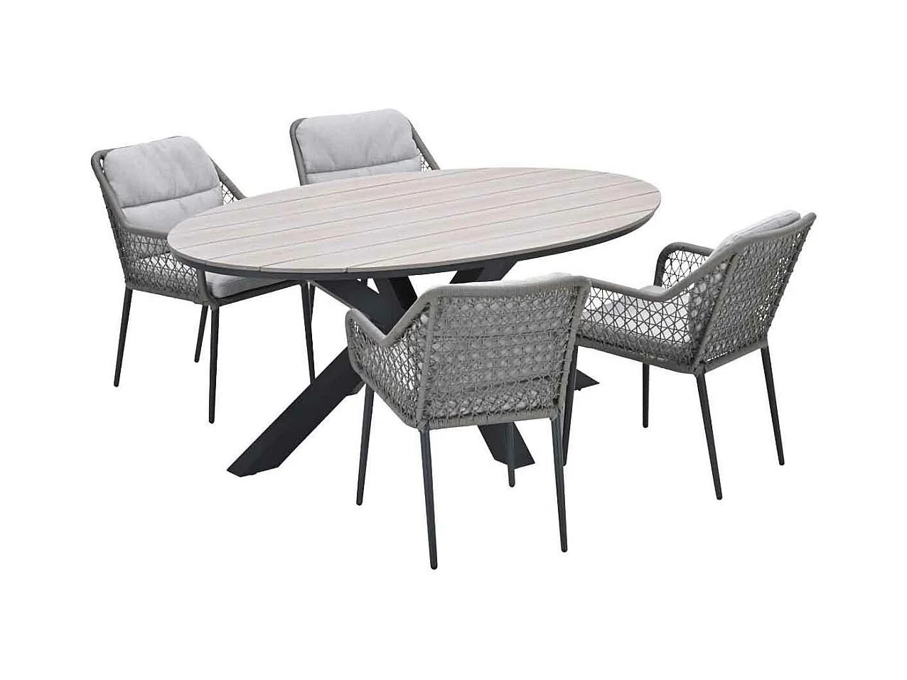 Ensemble de jardin Garden Impressions Tineo - Tulli - gris foncé - 180x115 cm - 5 pièces