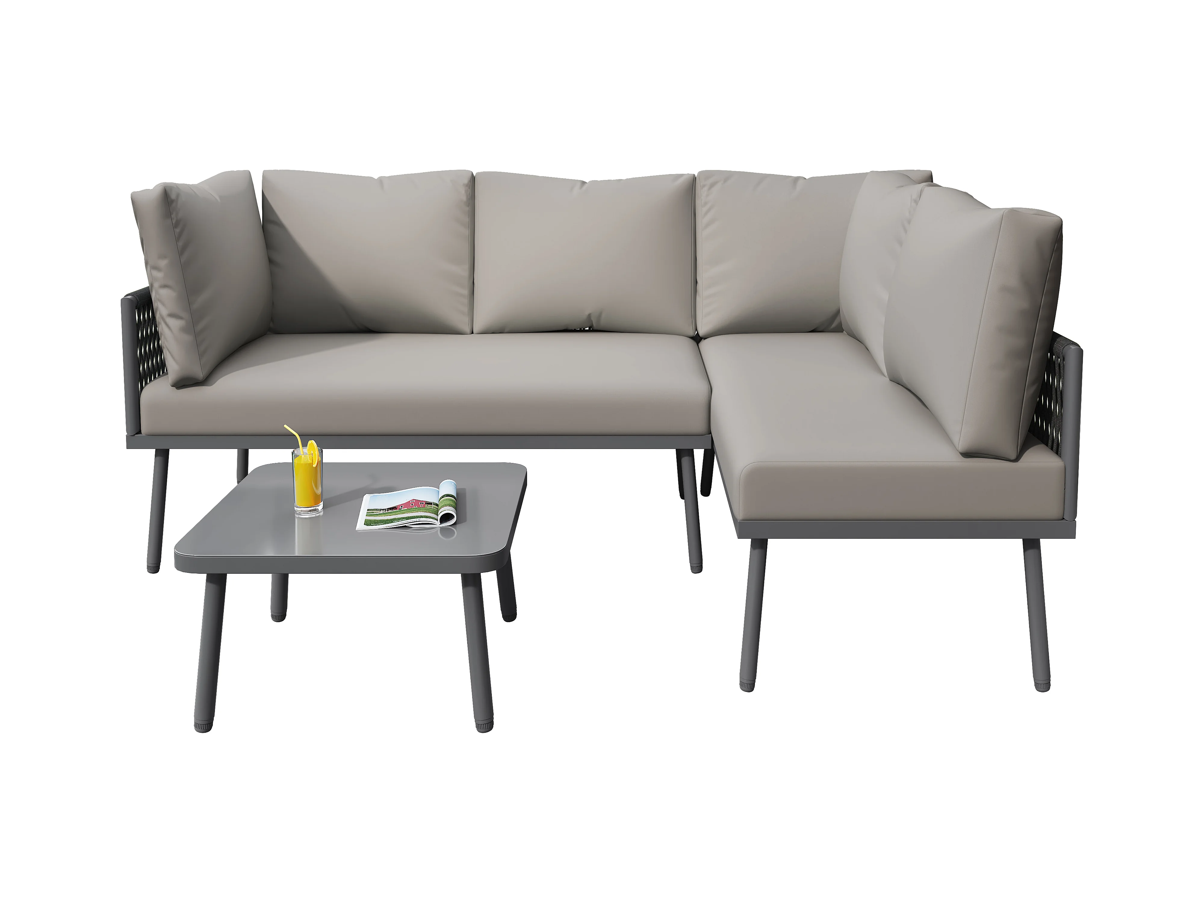 Ensemble de jardin gris comprend 2 canapés, une table, 2 coussins d'assise et 6 coussins