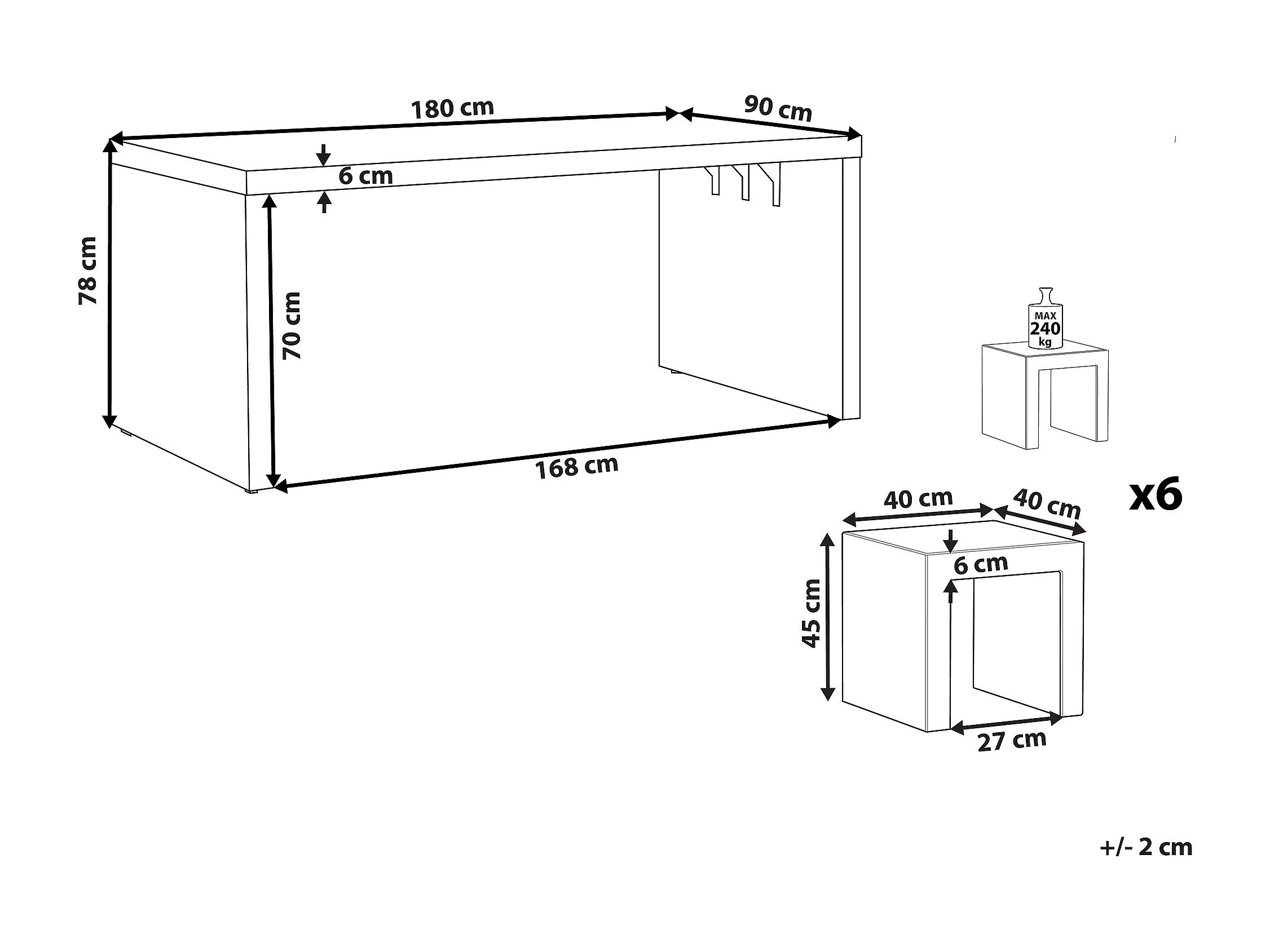 Salle à manger de jardin avec tabourets 6 places TARANTO Béton Gris