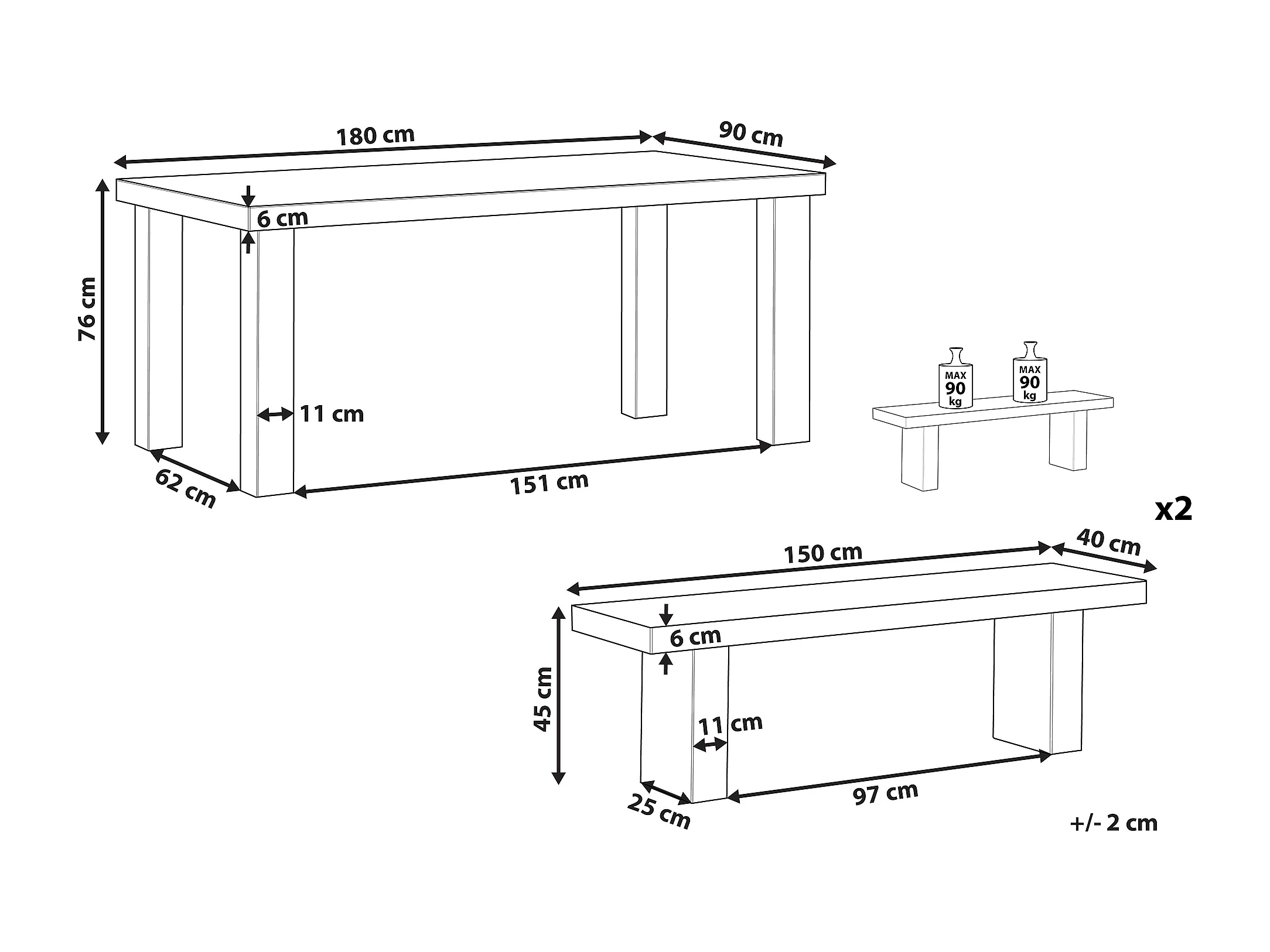 Salle à manger de jardin avec bancs 4 places TARANTO Béton Gris