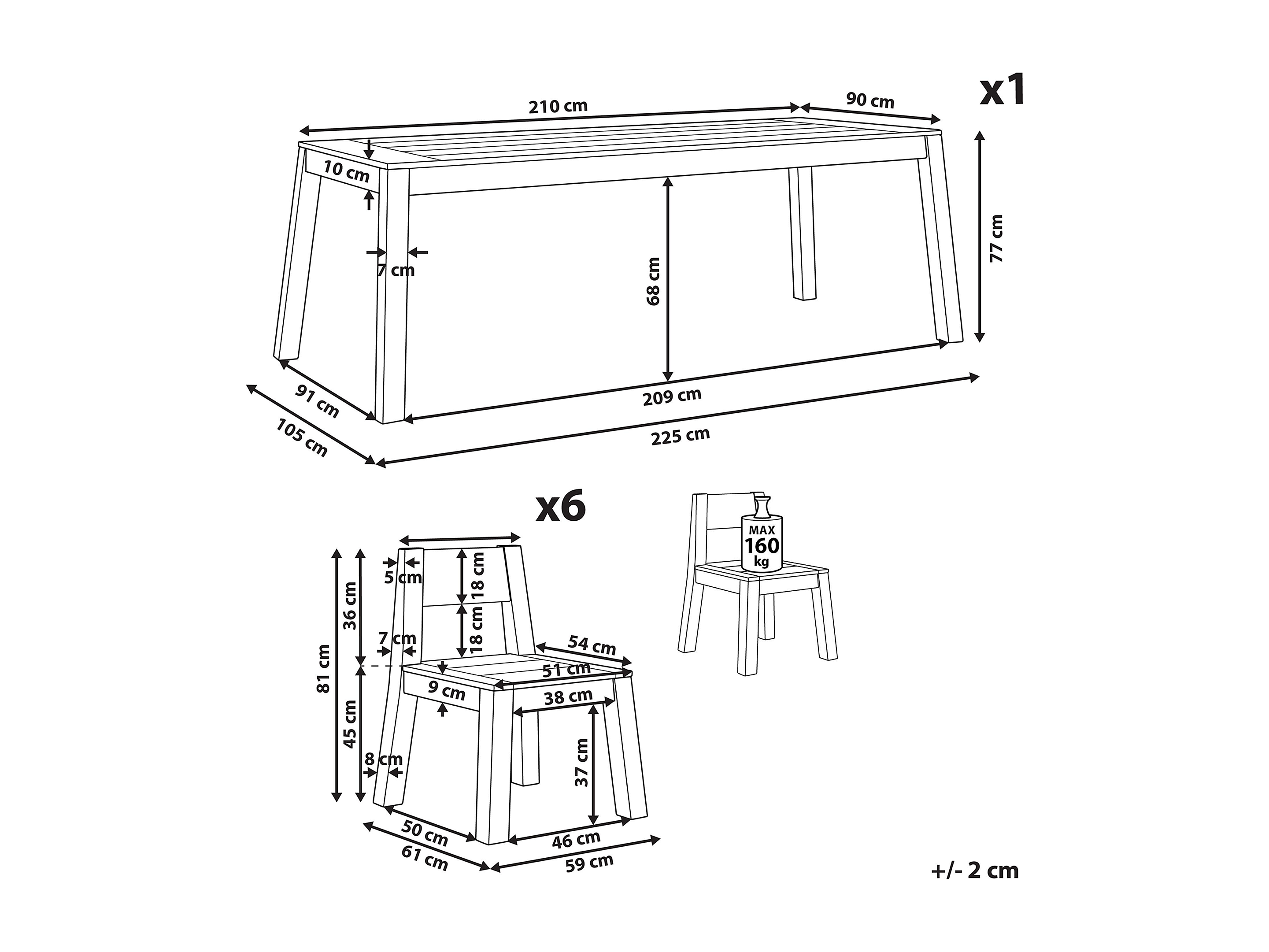 Salle à manger de jardin 6 places LIVORNO Acacia Marron