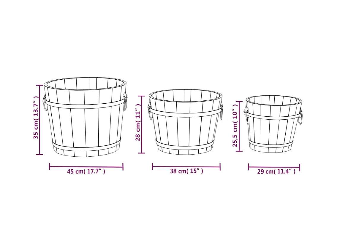 Ensemble de jardinière godet 3 pcs bois massif de sapin