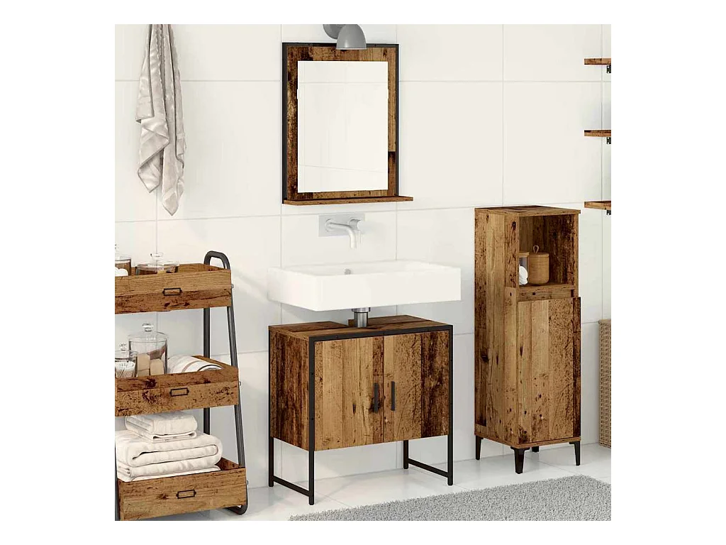 Ensemble de meuble de salle de bain 2 pièces en bois ancien et en bois d'ingénierie