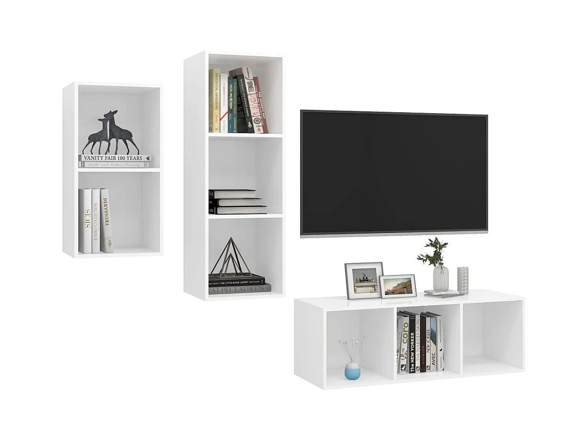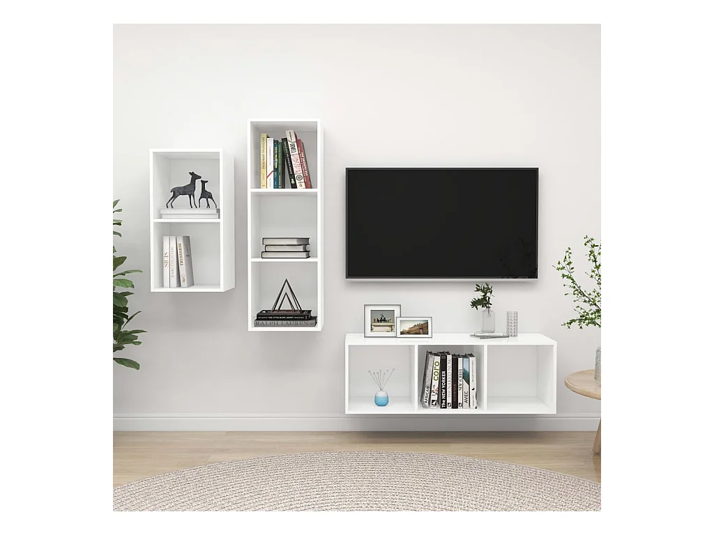 Ensemble de meuble TV 3 pcs Blanc Bois d'ingénierie